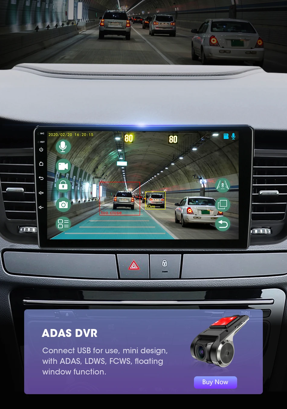Поддерживает подключение к видеорегистраторУ ADAS. ADAS DVR имеет несколько встроенных ассистивных технологий вождения, вставляя высококачественную карту памяти TF для записи каждого момента вашего вождения.