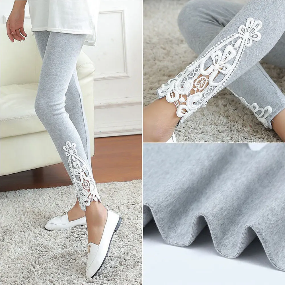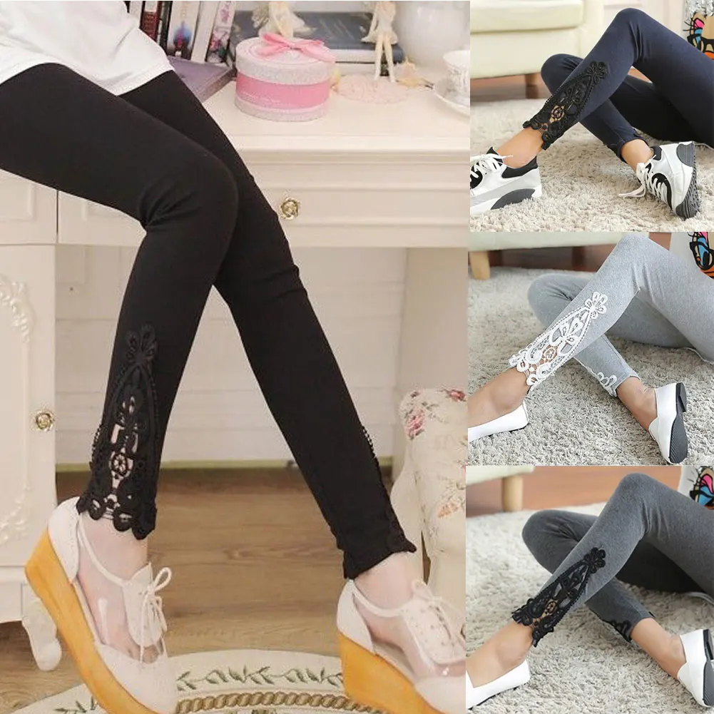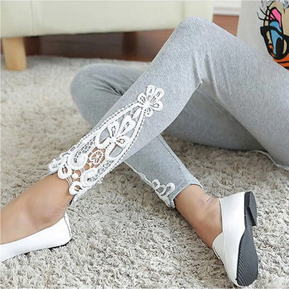 Новые Модные женские сексуальные обтягивающие кружевные хлопковые тонкие эластичные лосины Брюки джеггинсы