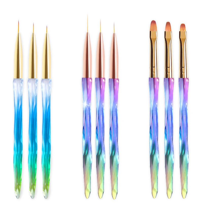 3 шт. градиентный кристалл набор кистей для ногтей для рисования линии сетки акриловый дизайн ногтей подводка для рисования Ручка DIY Кисти для УФ-геля инструменты для маникюра