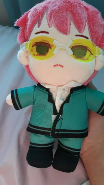 Получил куклу Saiki K в течение пары недель! Кукла выглядит точно так же, как на фотографиях. Качество одежды и куклы действительно хорошее, на самом деле, я удивился толщины ткани, используемой для одежды. Сама кукла мягкая и никаких стежков, кроме нескольких стендов розовых волос возле шипов. Единственное, что в антеннах есть магниты, которые, как я предполагаю, были приклеены к голове куклы, но внутри головки Нет магнитов. Может потребоваться такая инженерия для крепления на головке. Я рекомендую пришивать или приклеивать магниты, или создавать повязку, если вы не хотите менять куклу. В целом очень доволен этой покупкой!