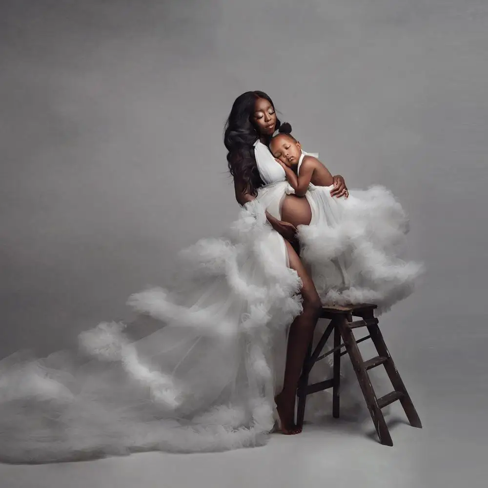 Шикарное белое Тюлевое платье с оборками для матери и дочери, длинное платье, женское Тюлевое платье для фотосессии, Одежда для беременных на заказ