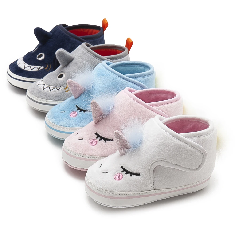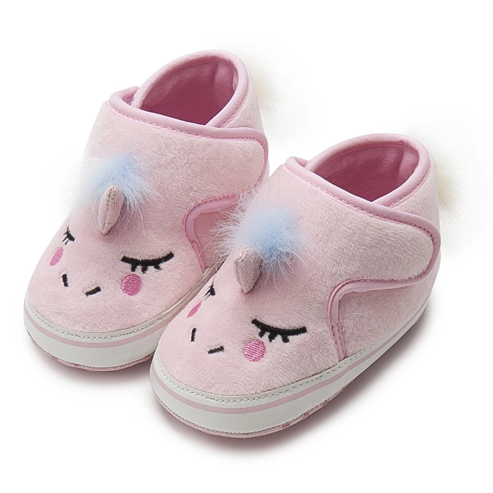 Новинка 2020, детская обувь, мягкие мокасины для мальчиков и девочек, розовые туфли для новорожденных с единорогом, Нескользящие теплые детские туфли