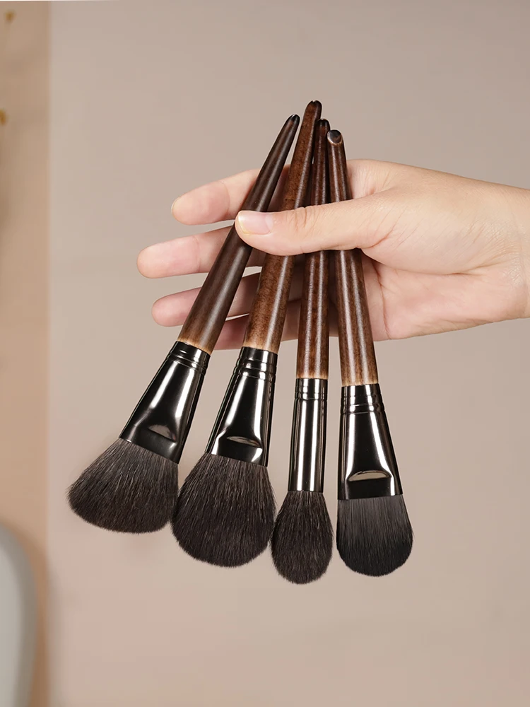 03 Кисть для пудры/румян, 4,0 см/19 см04 Контурная кисть, 3,5 см/18,3 см05 Кисть для хайлайтера/румян, 3,5 см/18 см06 Кисть для тональной основы, 3,0 см/17,8 см(03/04/05 козья шерсть)( 06 синтетических волос)