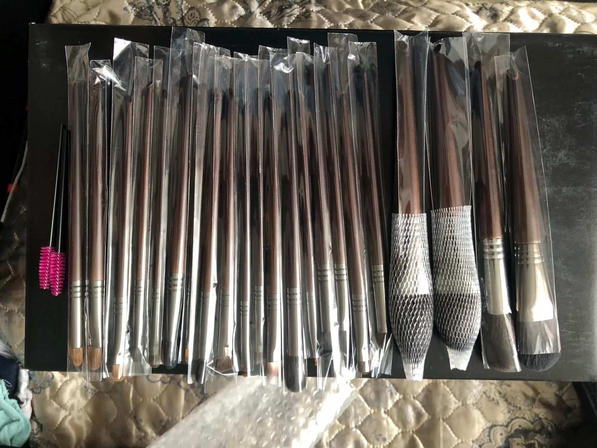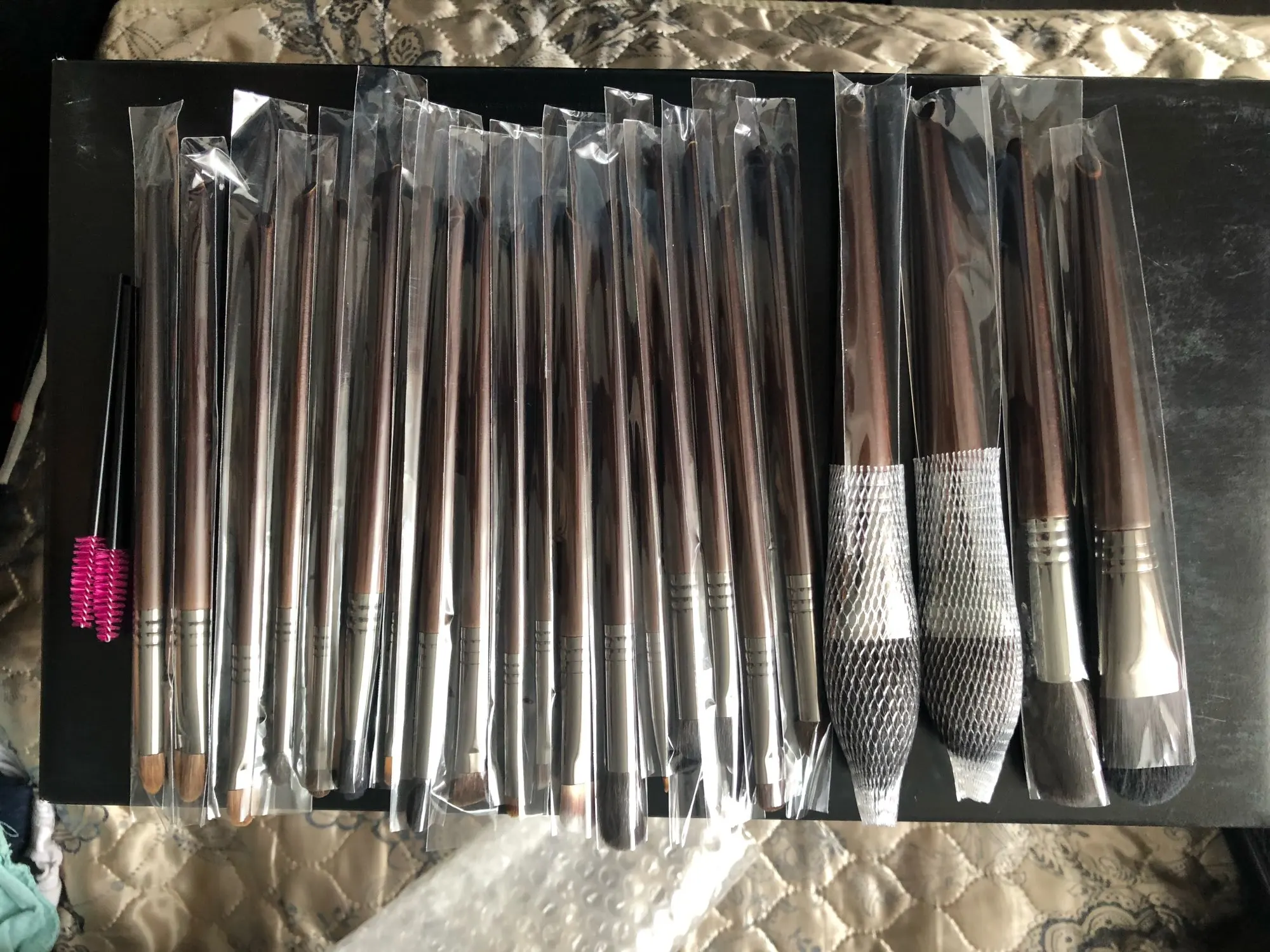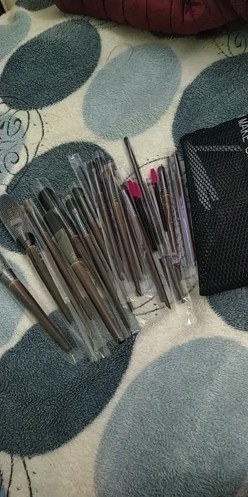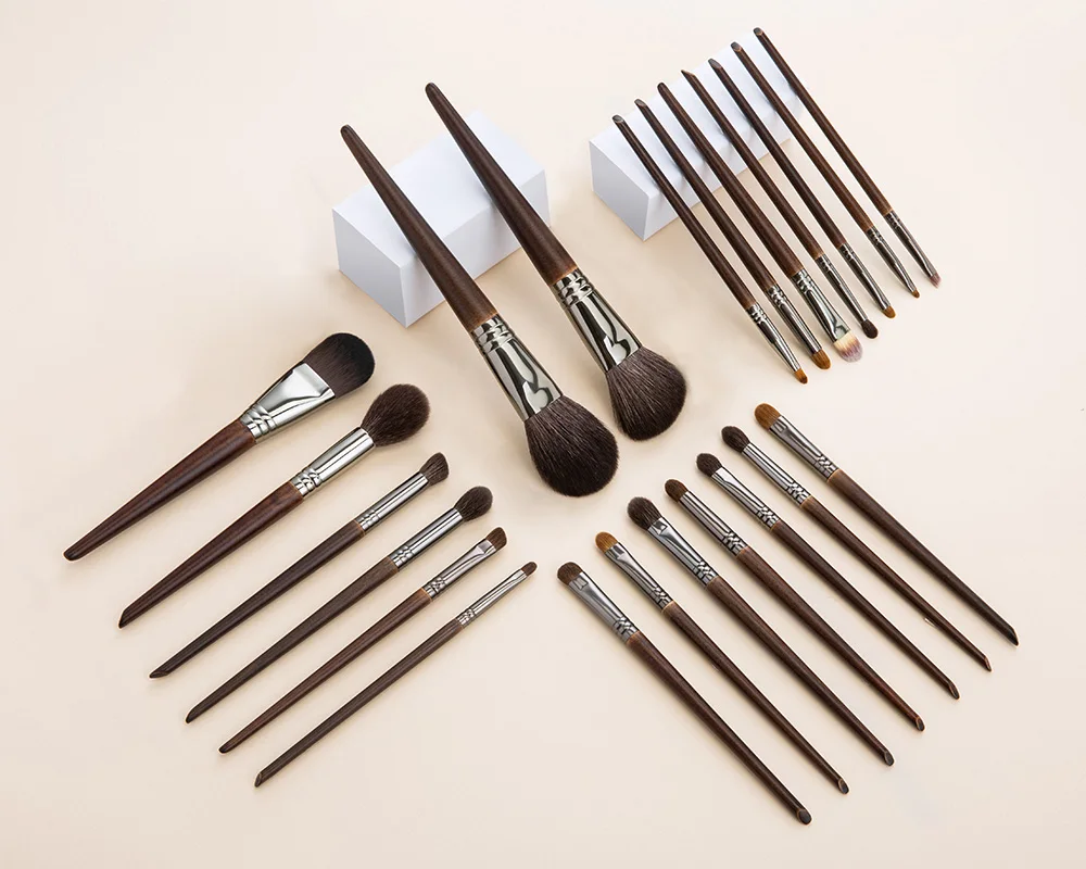 19 Остроконечная кисть для точного нанесения теней 1см/17см20 Малая кисть для теней, 0,9 см/16,9 см21 Кисть для губ, 0,7 см/16,6 см22 Кисть для бровей, 0,7 см/16,6 см23 Кисть для век, 0,6 см/16,6 см24 Тонкая кисть, 0,5 см/ 16,6 см(19 козьих волос/20 конских волос)(21/22/24 синтетические волосы)(23 ласки + синтетические волосы)