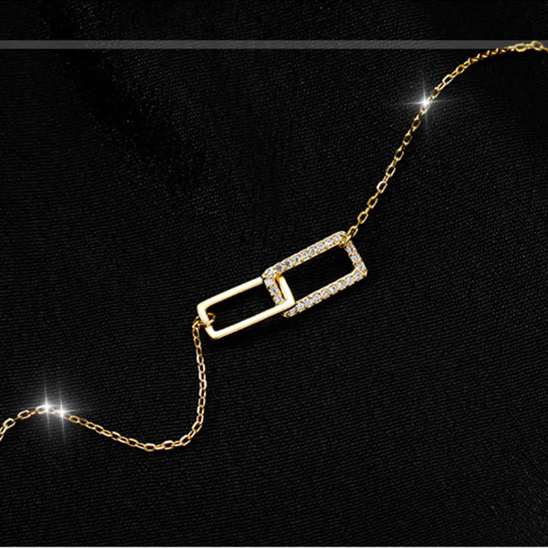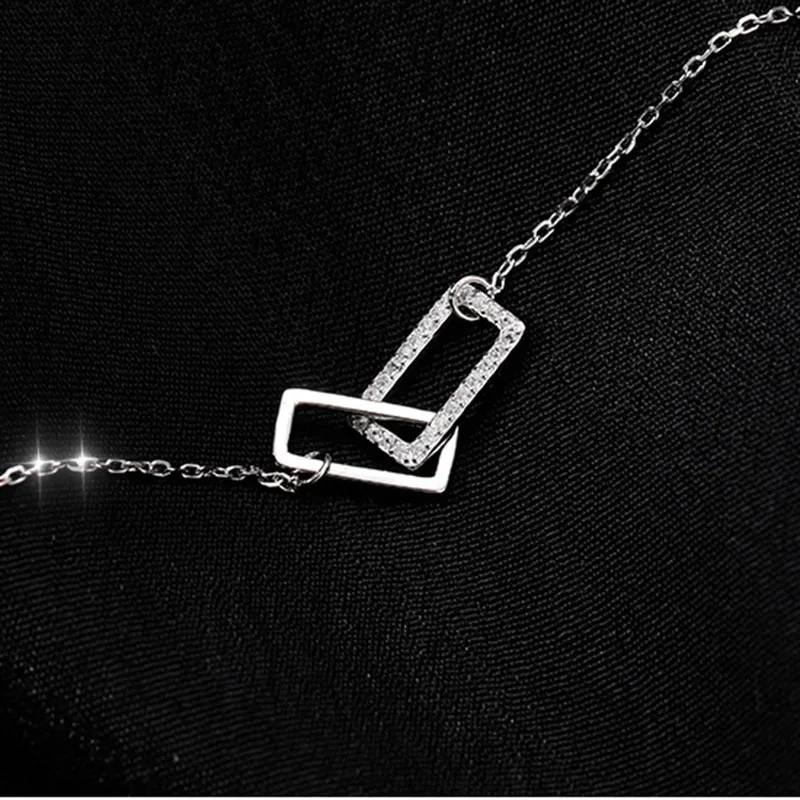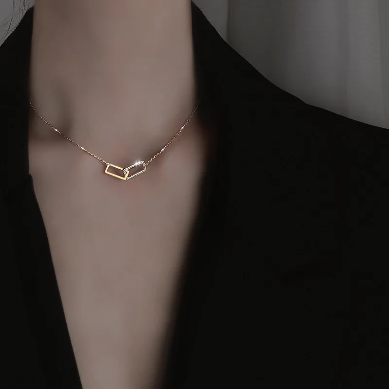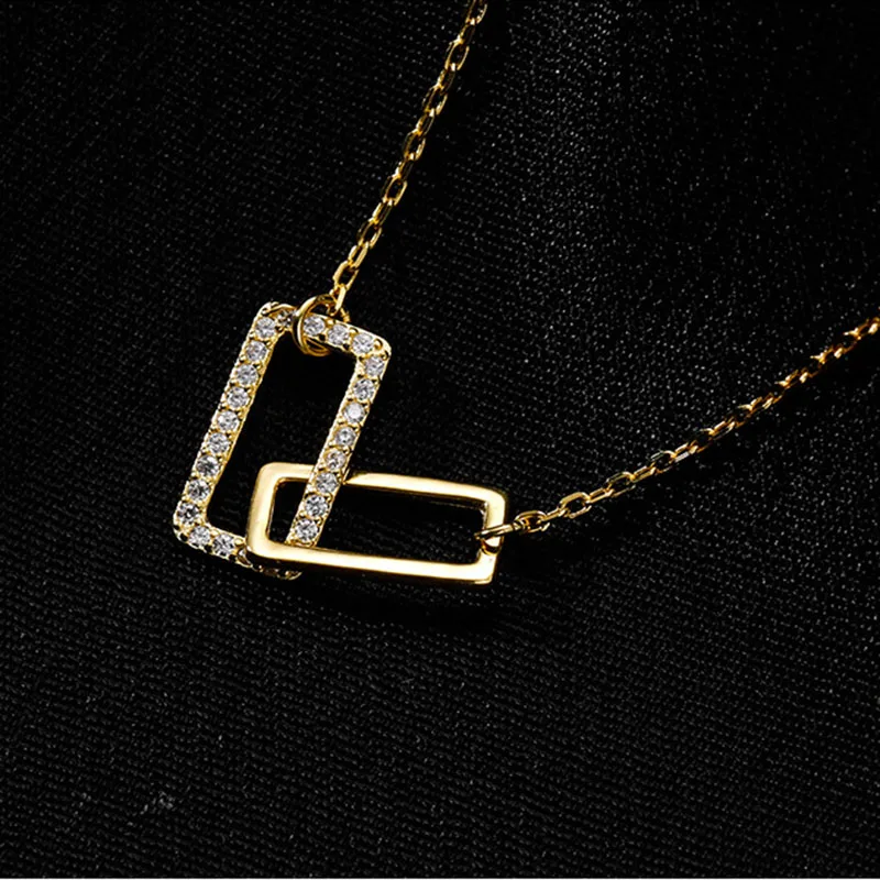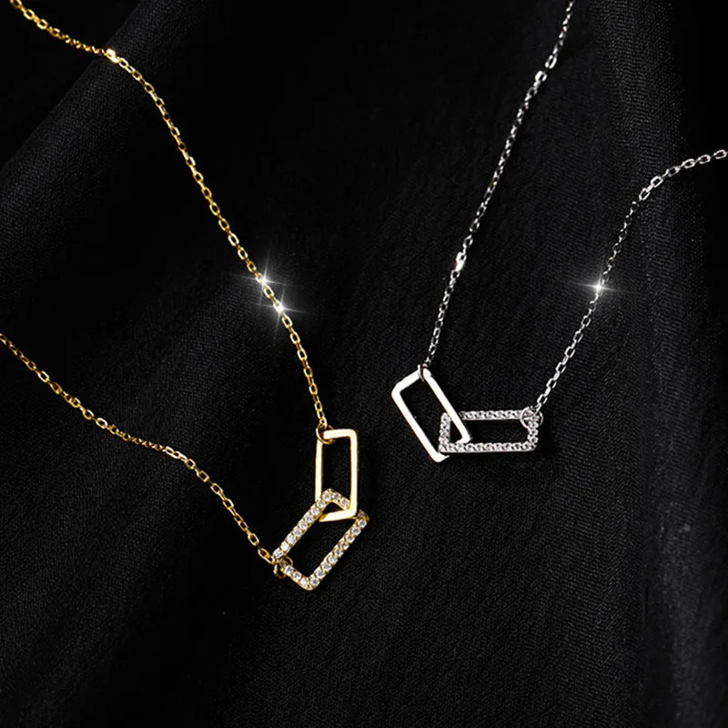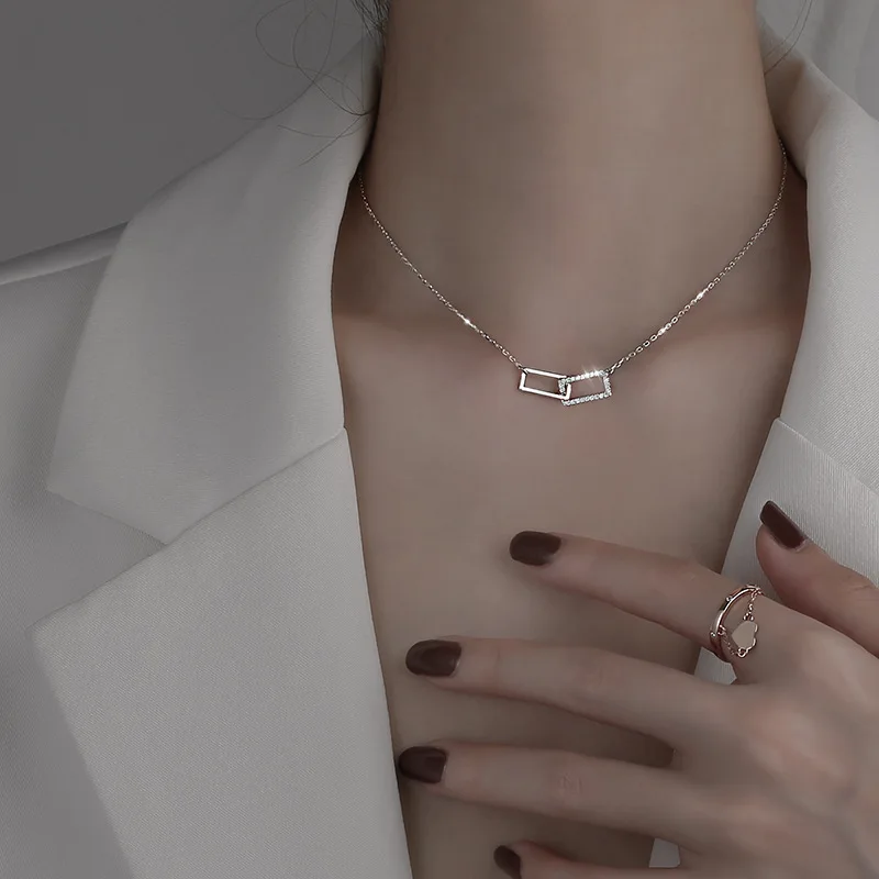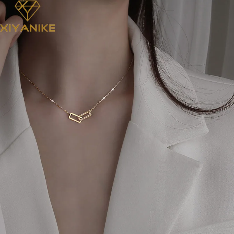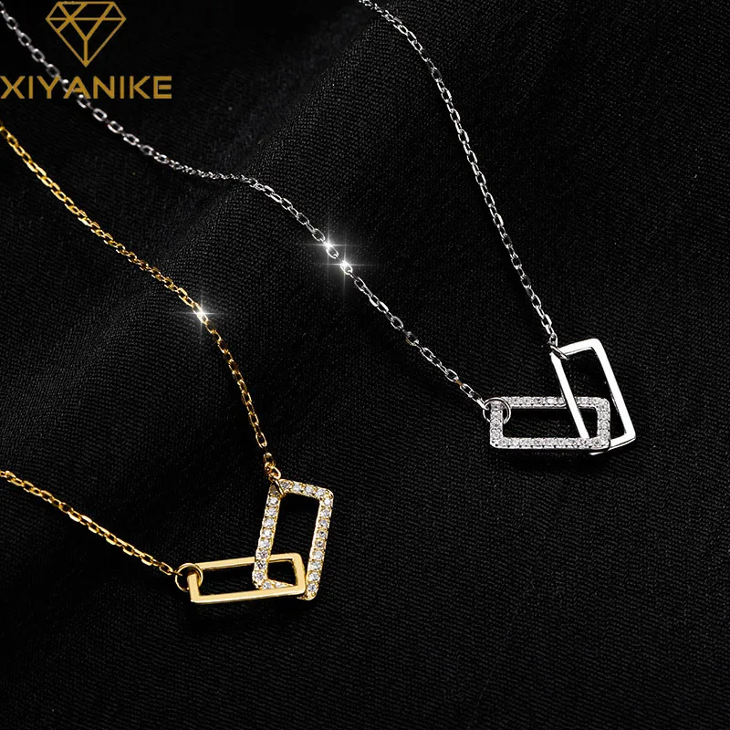 Женское ожерелье XIYANIKE серебряного цвета, двойная квадратная полая Стразы, уникальный дизайн, Геометрическая цепочка до ключиц ожерелье