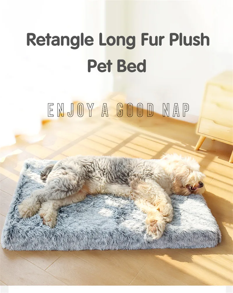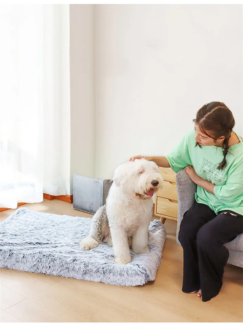 Кровать для больших собак, роскошная длинная меховая плюшевая кровать для домашних животных, подушка, 3D матрас для домашних питомцев из пены с эффектом памяти, съемный чехол для кошек и собак