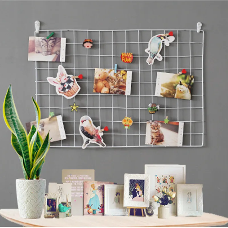 Скандинавская железная сетка, настенное украшение, фоторамка для спальни, открыток, сетчатый дисплей, органайзер для хранения, держатели