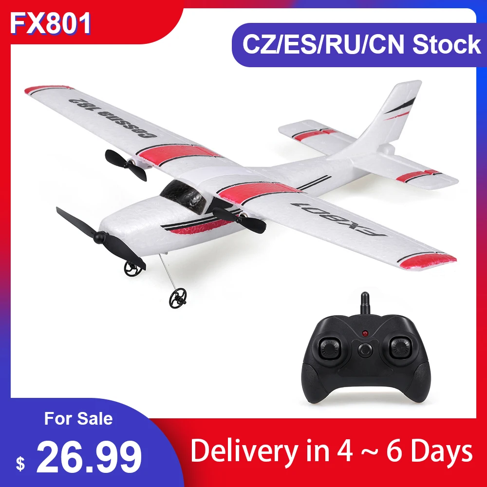 Начинающие электрические самолеты FX801 самолет Cessna 182 2,4 GHz 2CH радиоуправляемый самолет вертолет открытый полет игрушки для детей мальчиков