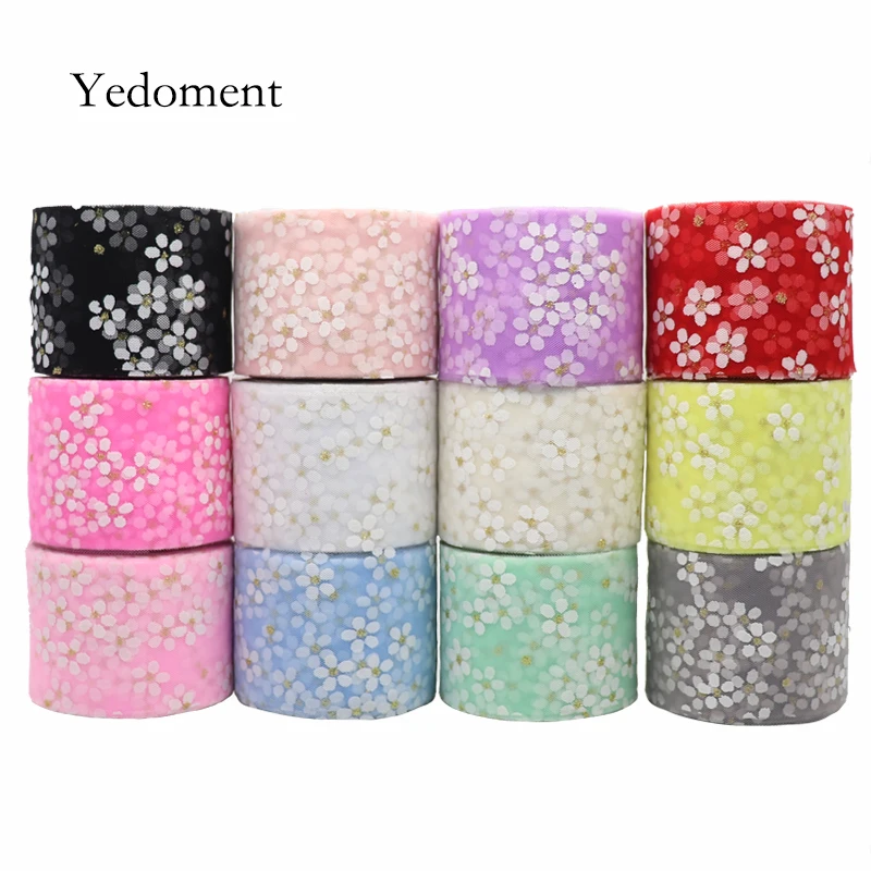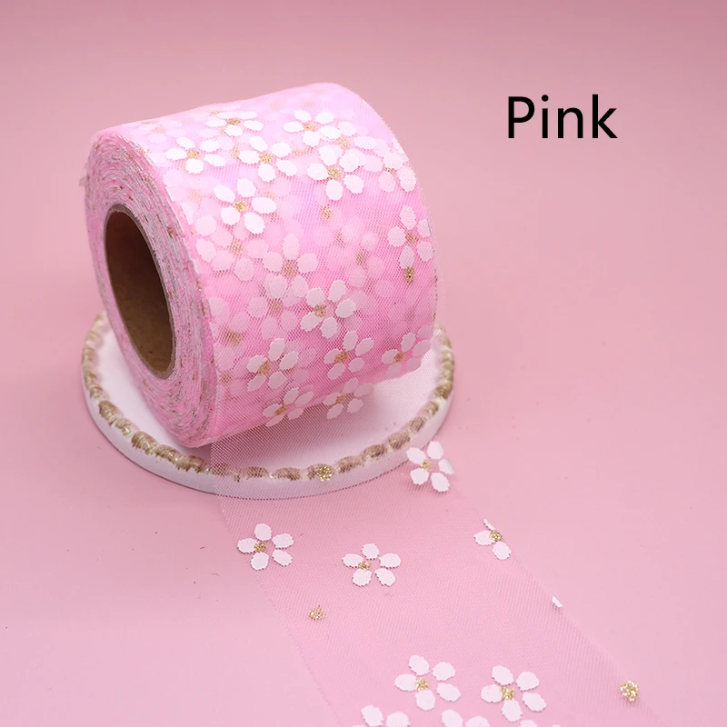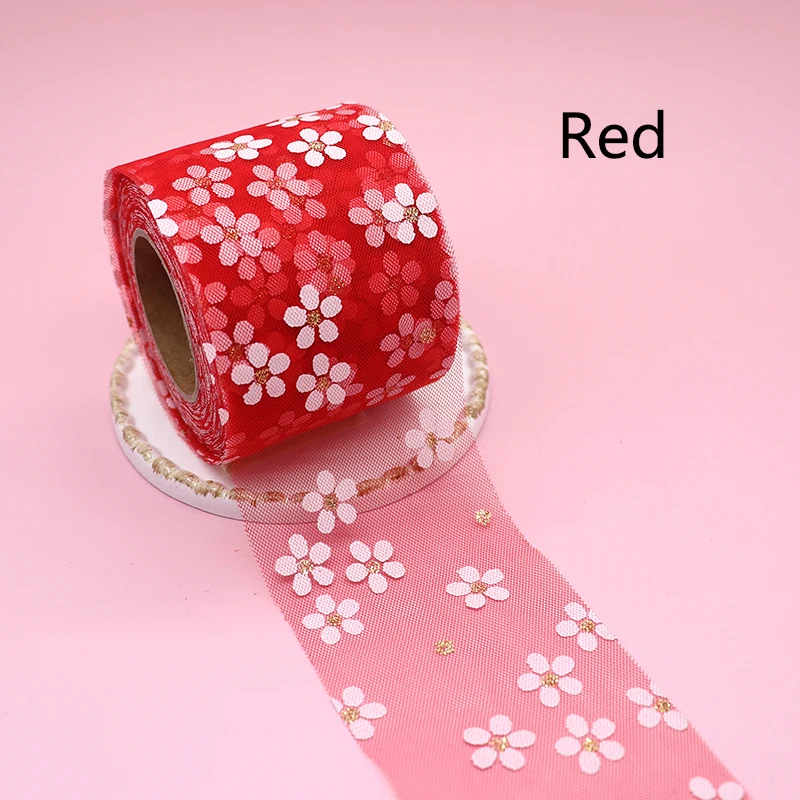25 ярдоврулон, 6 см, Тюлевая лента с цветами из органзы, товары для вечевечерние, сделай сам, банты для волос, материалы ручной работы Y2020091801