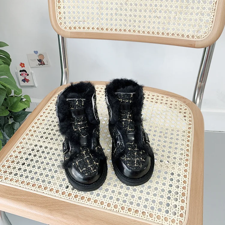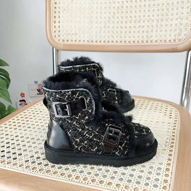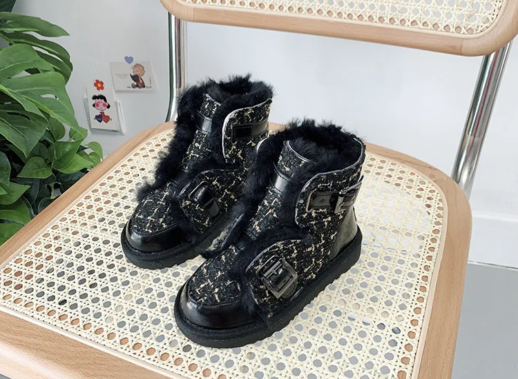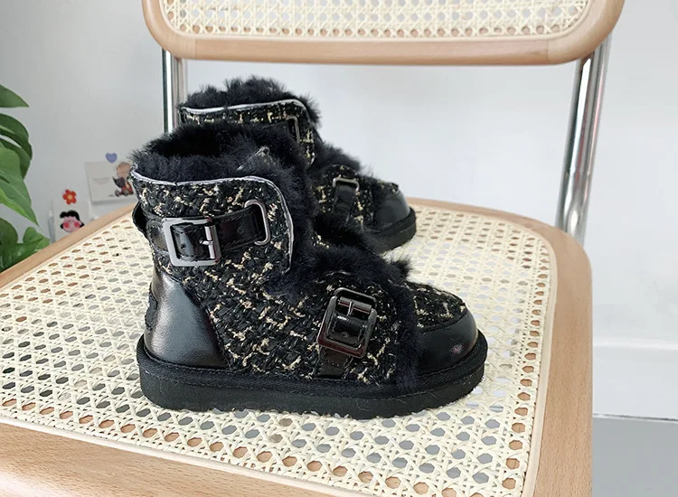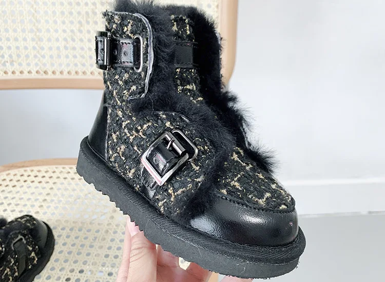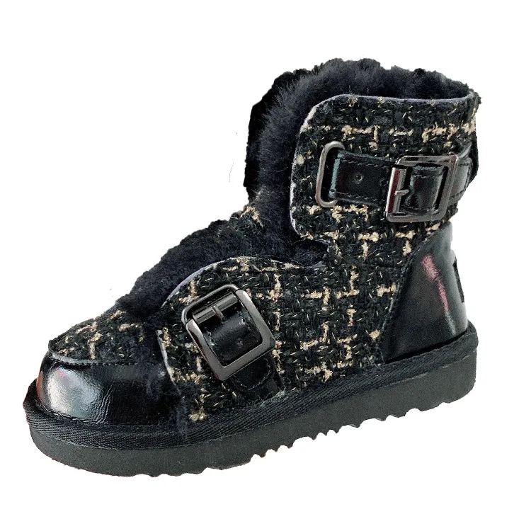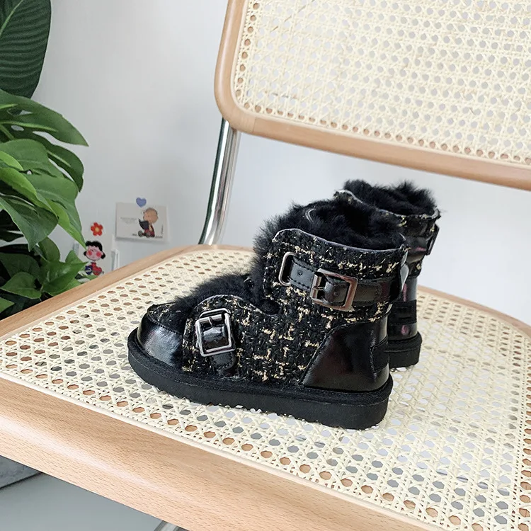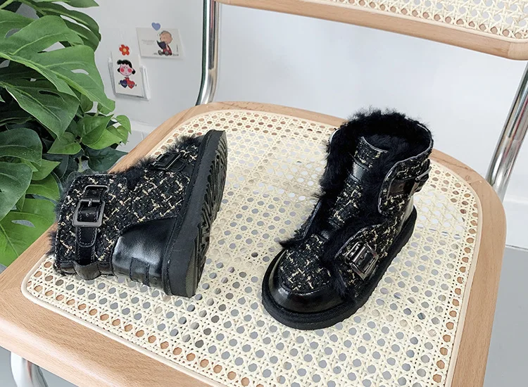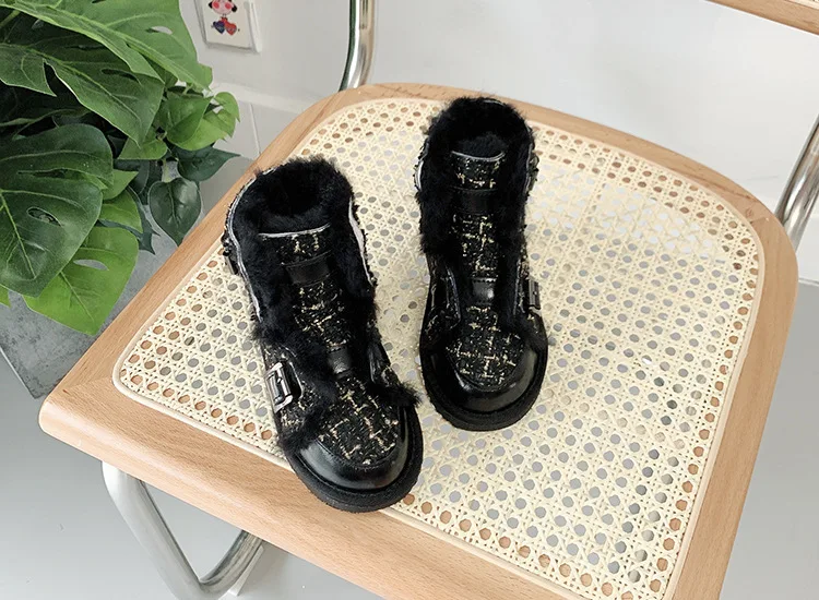 Зимние детские ботинки; Теплые зимние ботинки для маленьких девочек; Детская обувь без застежки; Черные ботильоны для мальчиков; Модная брендовая обувь; Новые кожаные ботинки
