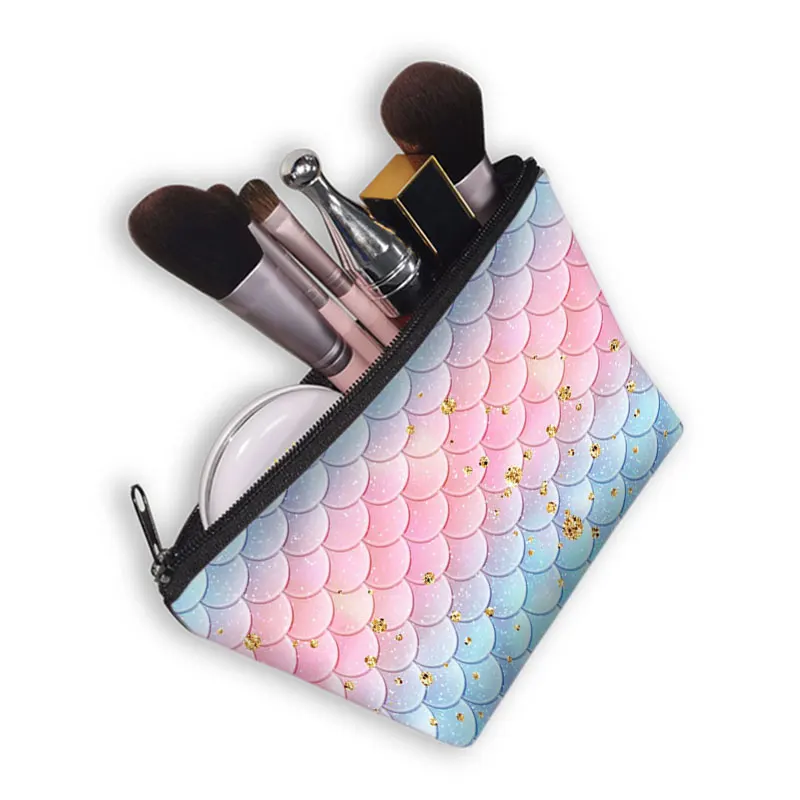 Женская косметичка русалка, вместительная Холщовая Сумка для хранения на молнии, студенческий чехол для карандашей, чехол для косметики, сумочка для макияжа для девушек