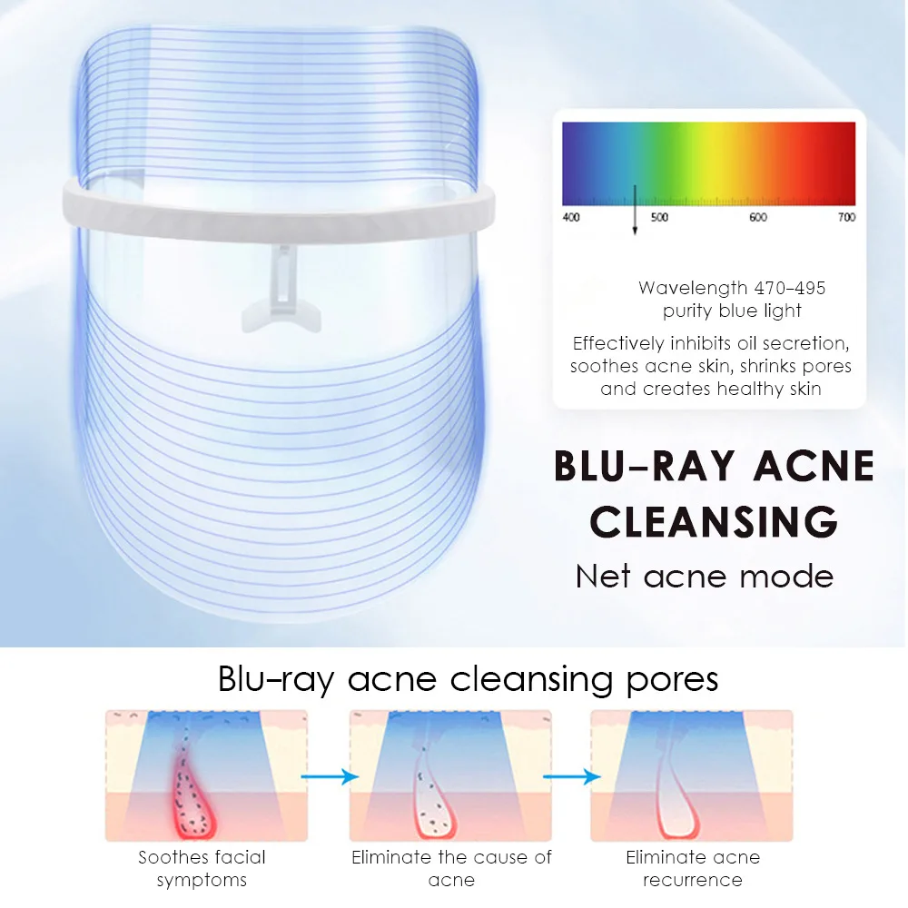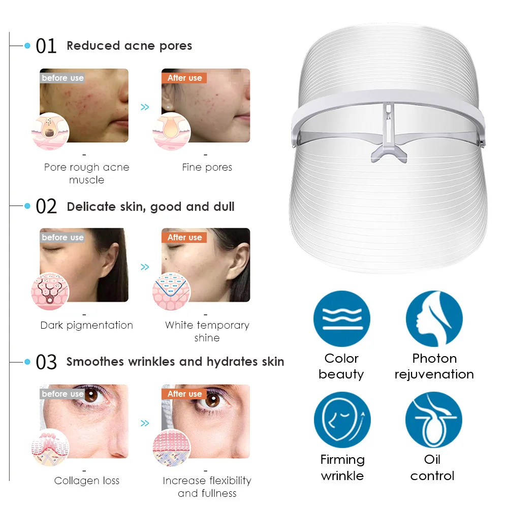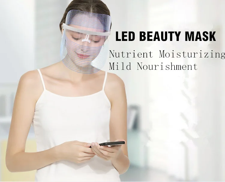 Светодиодная маска для лица, 3 цвета, терапия, маска для ухода за кожей, тушь для ресниц, фотонный аппарат, устройство для сужения пор, отбеливание морщин, акне