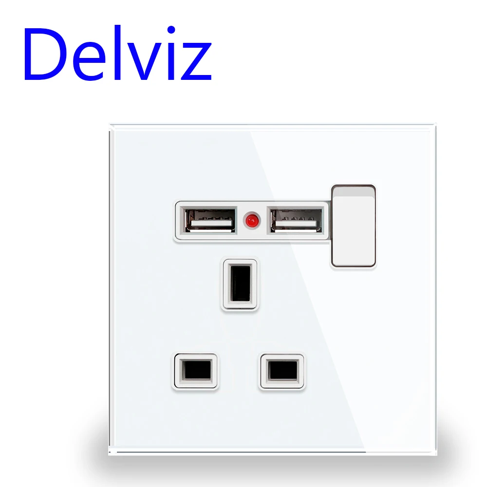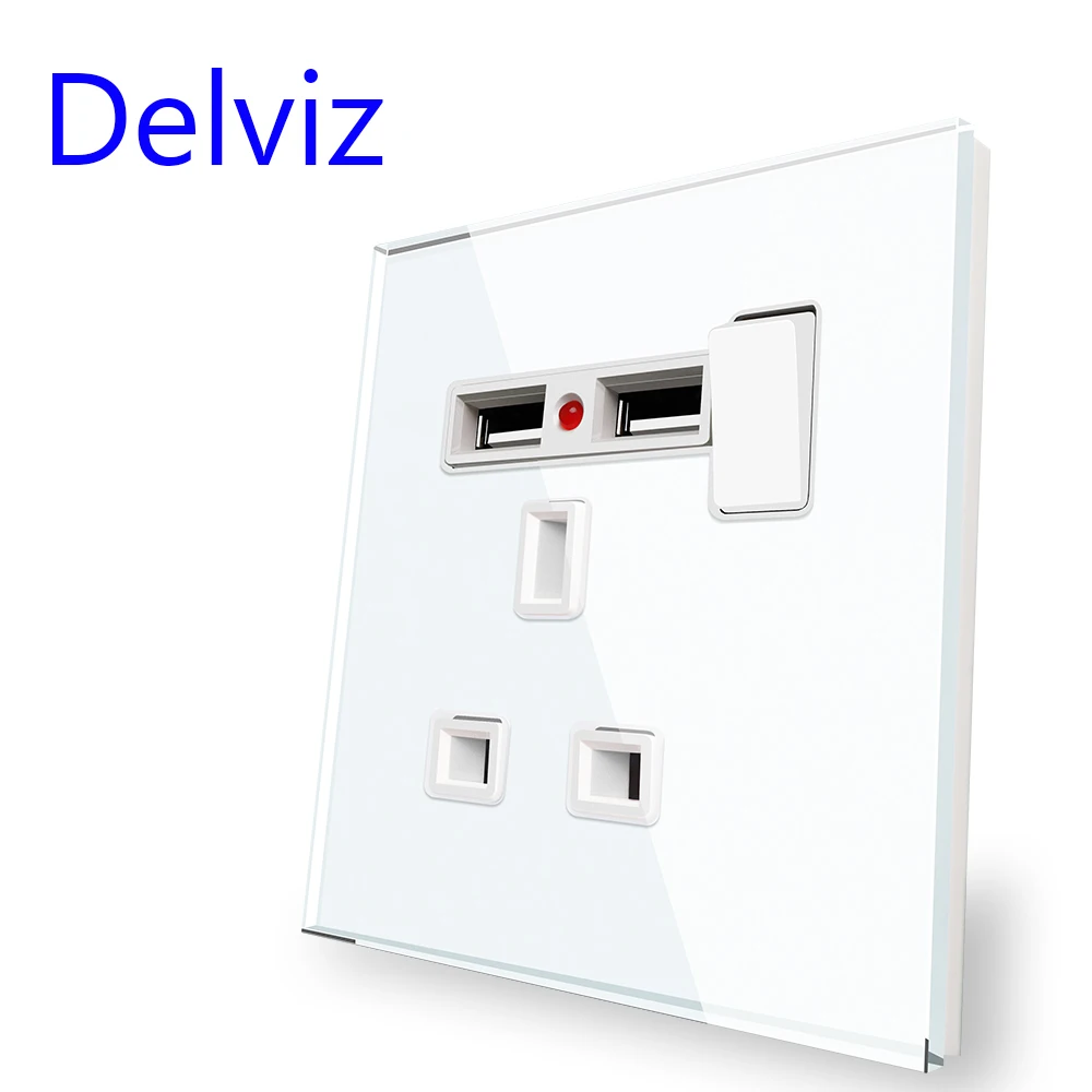 Delviz Великобритания стандартная настенная розетка, переключатель управления, 110V-250V 13A, на квадратных высоких службы Стекло Панель, 5V 2A USB зарядка Мощность розетки