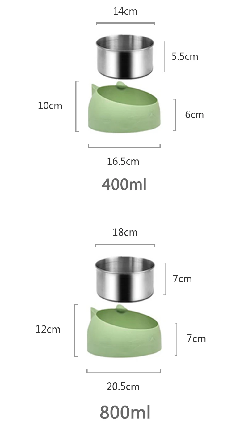 Миска для кошек и собак, нескользящее основание из нержавеющей стали с наклоном на 15 градусов, чаша для кошек, защитная шейка для щенков, кормушка для кошек, мисок для домашних животных