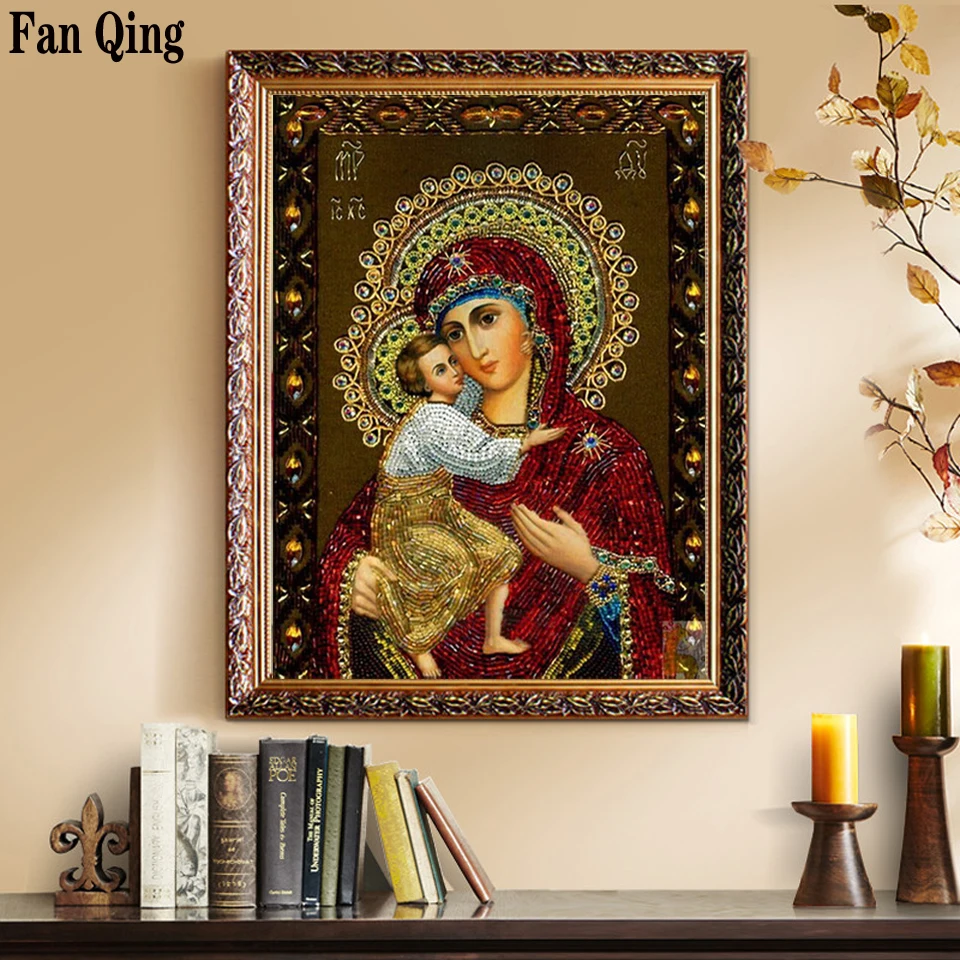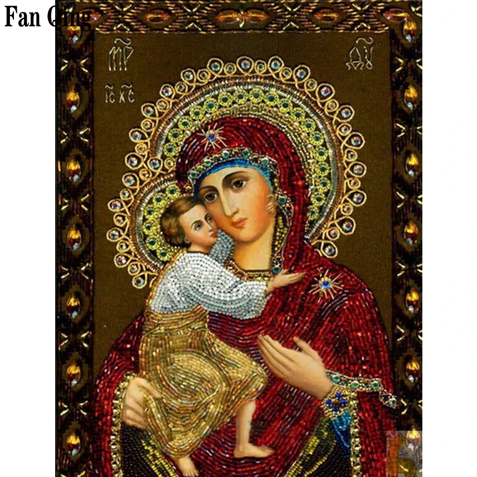 Алмазная 5D картина сделай сам, икона, полностью круглая вышивка, Алмазная мозаика, вышивка Дева Мария, украшение для стен