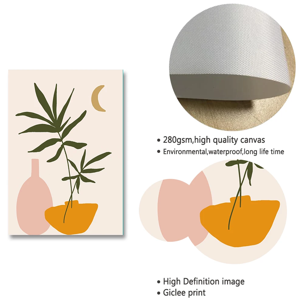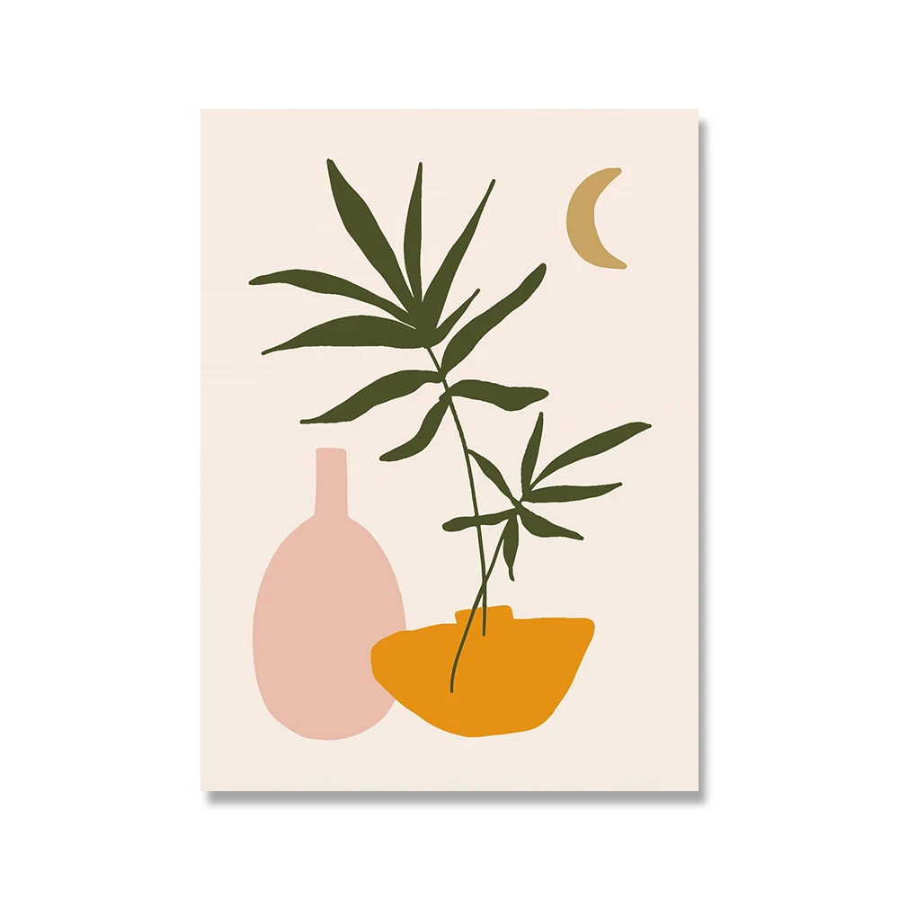 Абстрактное винтажное растение в горшке с листьями, настенное искус...