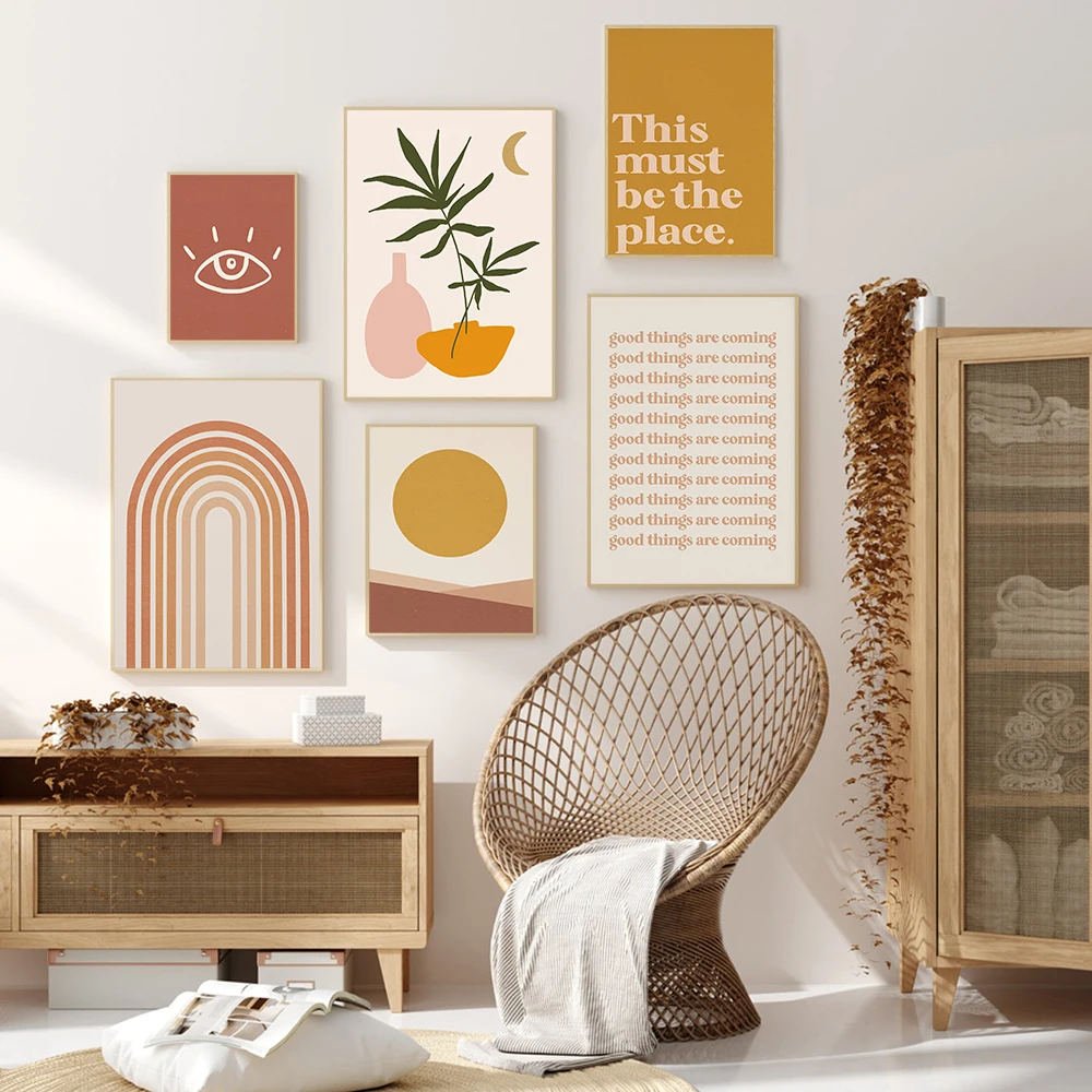 Абстрактные картины в стиле бохо с изображением пейзажа, Луны, пост...