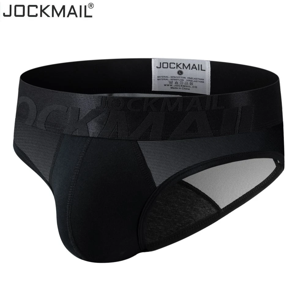Трусы-брифы JOCKMAIL мужские, пикантное нижнее белье, хлопковые дышащие бикини, прозрачные трусы для геев, слипы на бретелях, белые черные