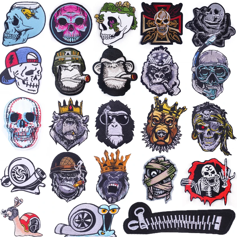 Wild Orangutan заплатки DIY полосы вышитые патчи для одежды панк череп патчи для куртки животных Parches Значки украшения