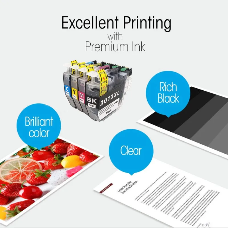 Модель продукта: чернильный картридж LC3013XLОсобенность: совместимостьЦвет картриджа: черный, голубой, желтый, пурпурныйОбъем чернил: 11 мл (BK ), 7 мл (C, M, Y)С чипом картриджа: ДаСовместимый принтер:Для Brother MFC-J491DW/MFC-J497DW/MFC-J690DW/MFC-J895DWВ заказе: 4 шт.1 Картридж с черными чернилами совместим с Brother LC3013;1 картридж с голубыми чернилами, совместимый с Brother LC3013;1 картридж с желтыми чернилами совместим с Brother LC3013;1 картридж с пурпурными чернилами, совместимый с Brother LC3013.