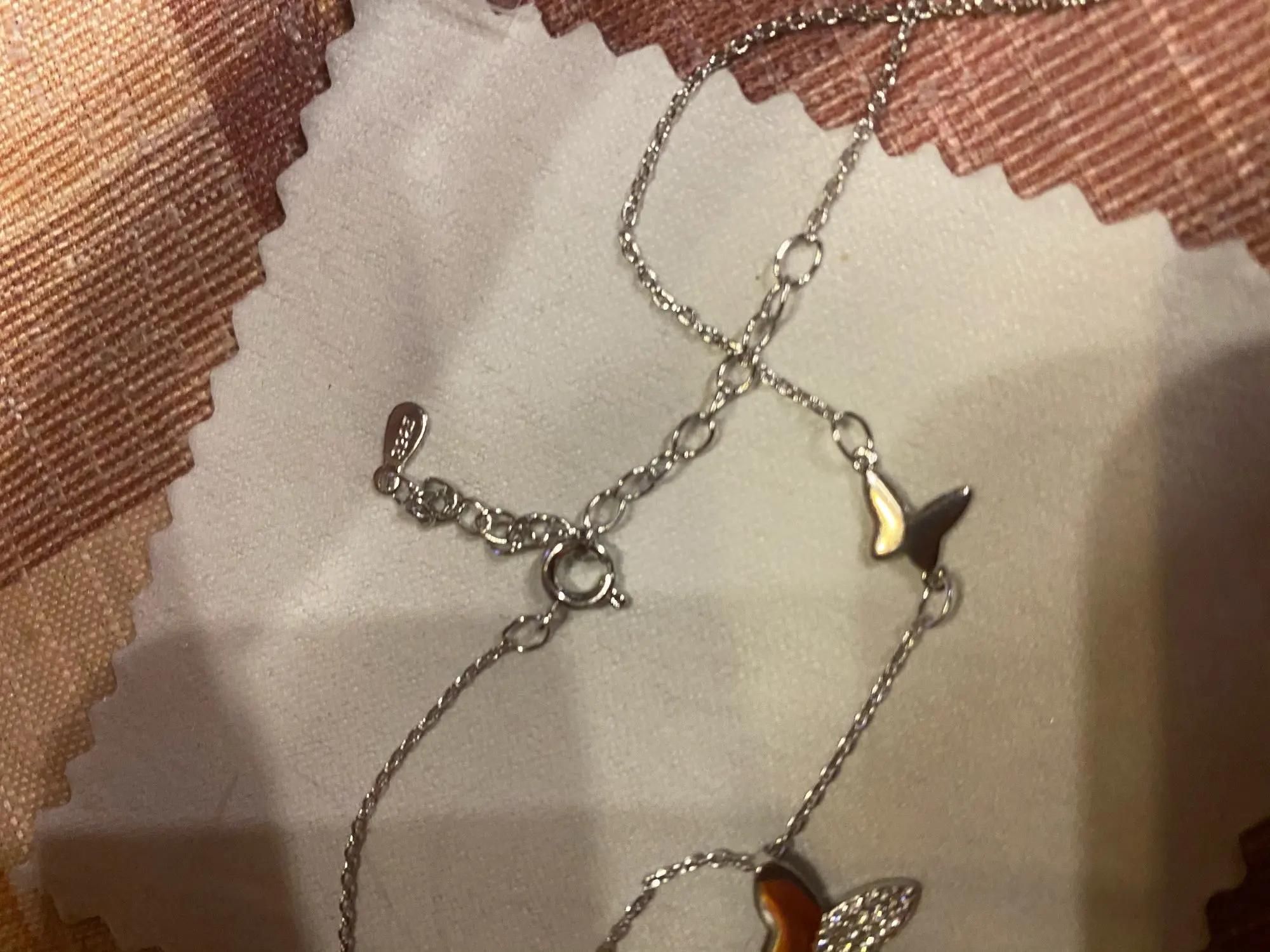 Красивое, нежное украшение. Стоит проба 925. Цепочка очень хрупкая, нужно аккуратнее.