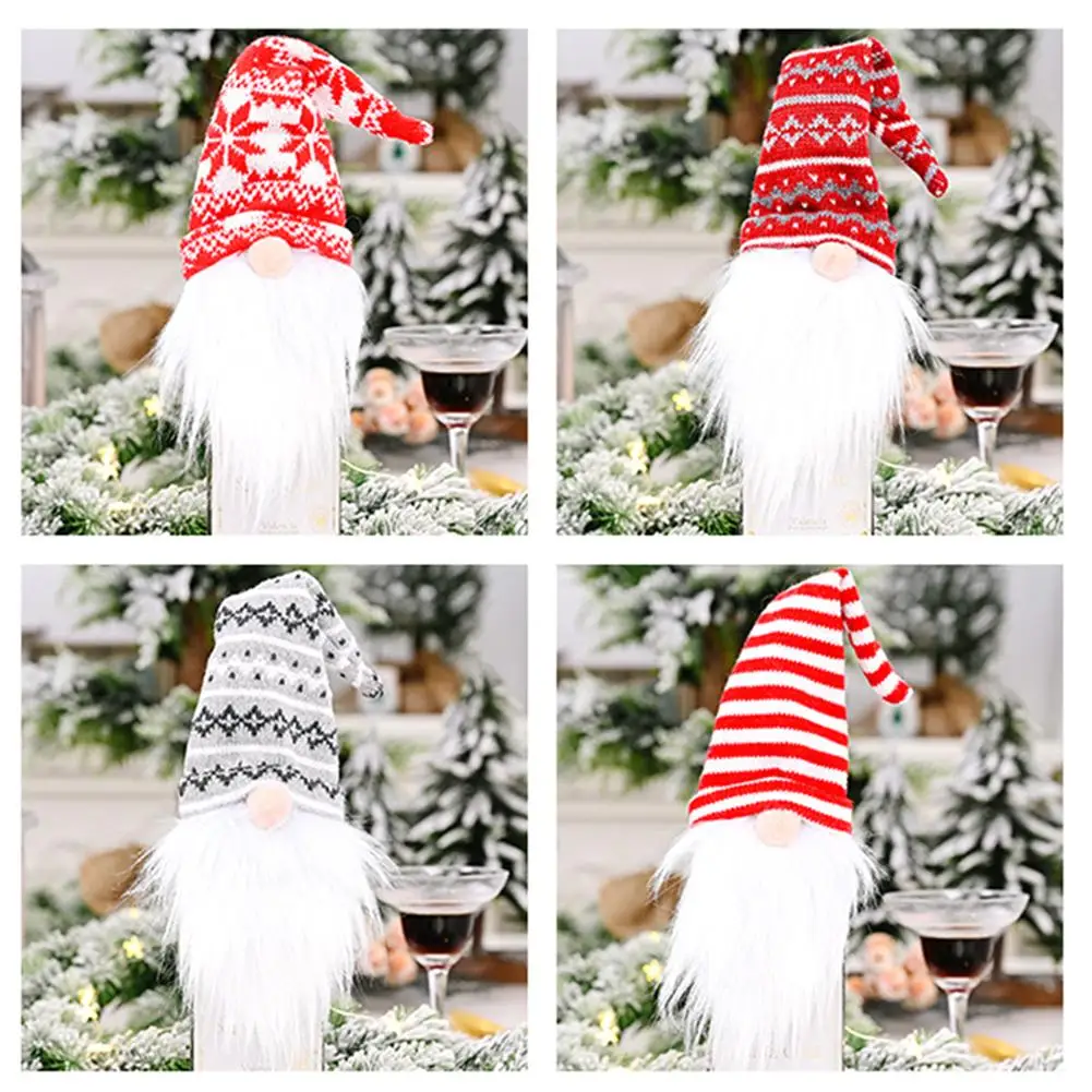Вязаные рождественские гномы, крышка для винных бутылок ручной работы, Шведский Топпер для декоративных бутылок вина, платье для праздника