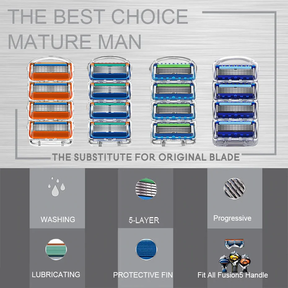 В комплект входит оригинальные лезвия Gillette Fusion 5 и сменные лезвия для бритвы (8 или 16 шт.), пожалуйста, выбирайте в соответствии с вашими предпочтениями.