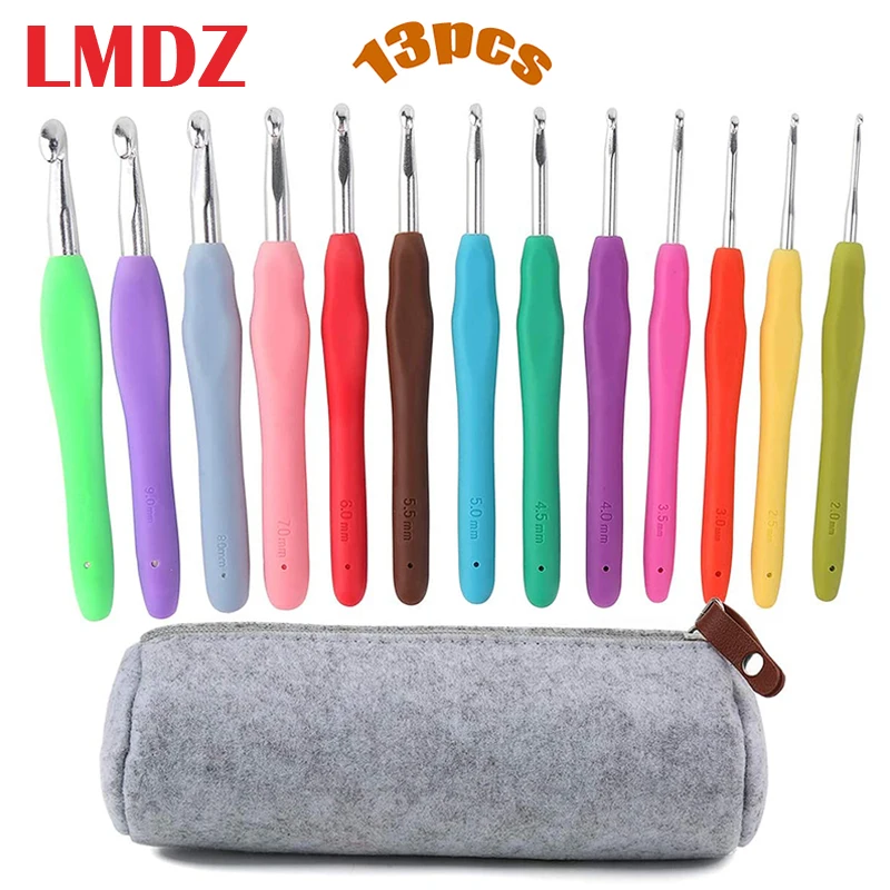 LMDZ 13 шт. набор крючков для вязания крючком, эргономичная ручка с мягкими ручками, 2 мм (B)-10 мм (N) Экстра удлиненная веревка плюс набор пряжи для вязания спиц