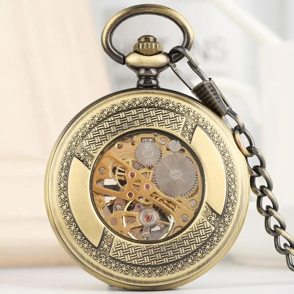 Роскошные светящиеся Механические карманные часы бронзовые полые колеса с ручным заводом в стиле стимпанк карманные Подвесные часы на цепочке антикварные часы лучшие подарки