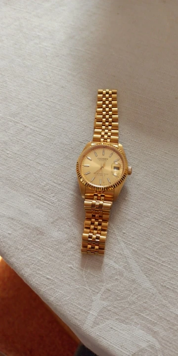 Через несколько дней после покупки мне сказали, что все золотые версии, которые я заказал, не были на складе, поэтому мне пришлось взять другой дизайн. Сами часы сделаны очень хорошо. Я дал его моей жене, потому что ей нравится этот вид.