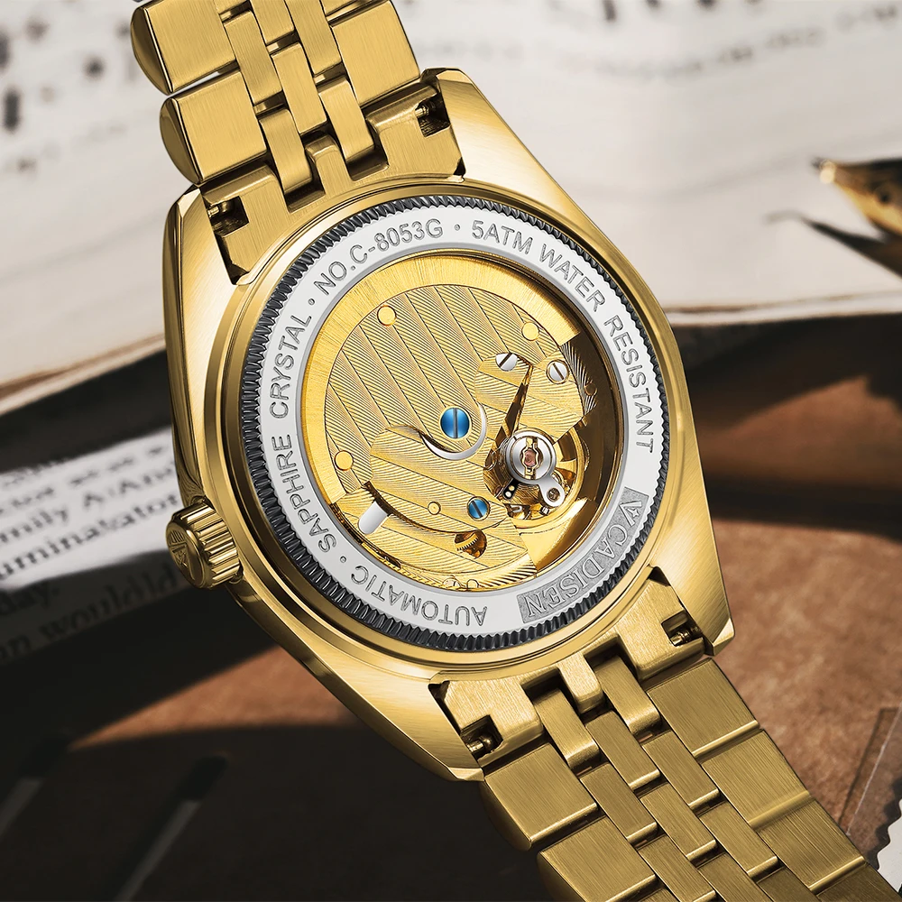 Часы наручные CADISEN Мужские механические, брендовые Роскошные автоматические деловые водонепроницаемые золотистые