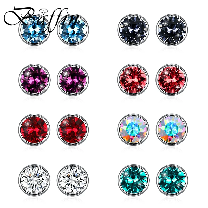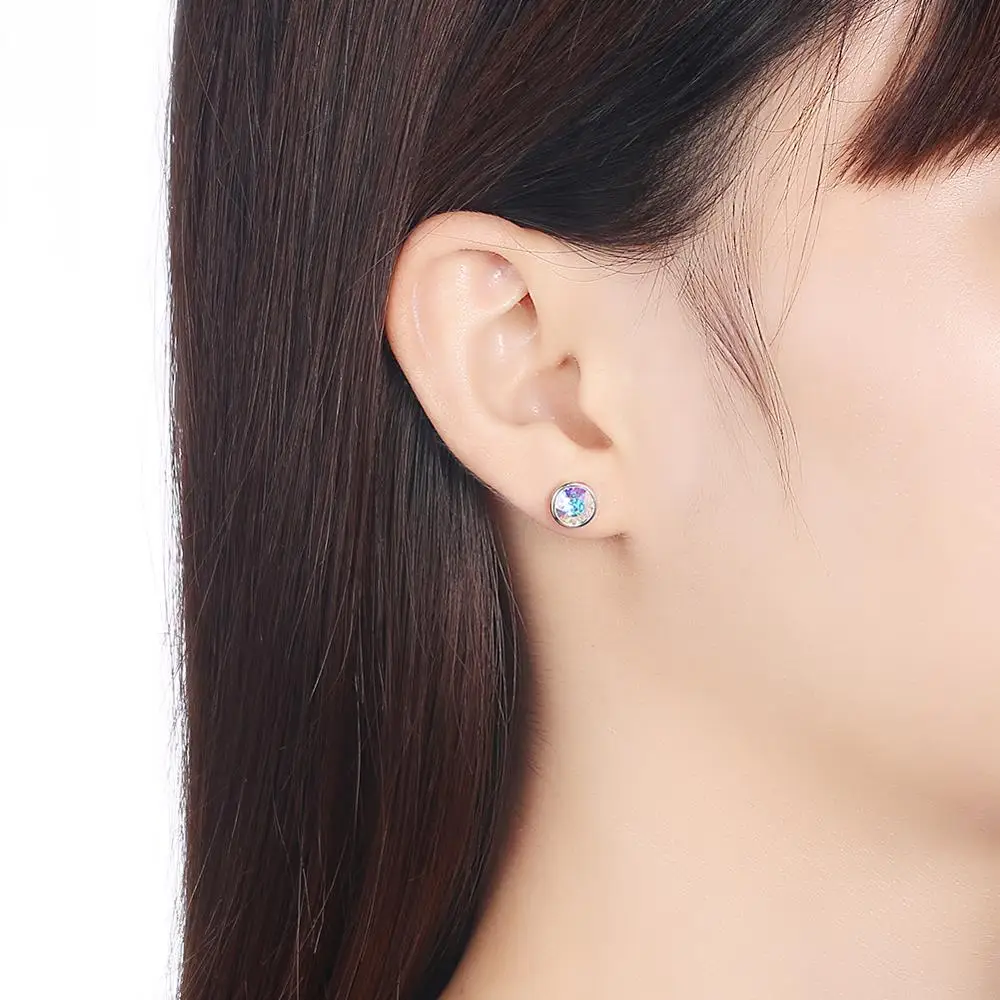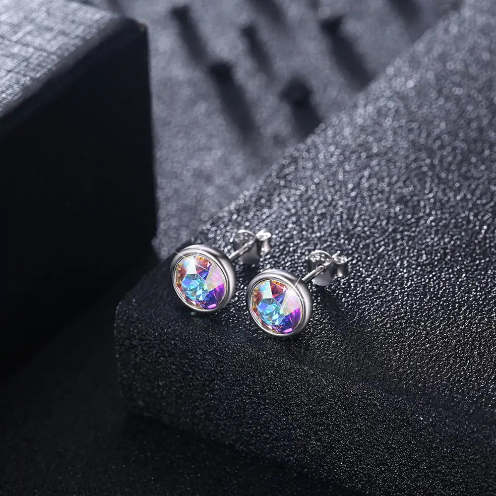 Женские круглые серьги-гвоздики с кристаллами Сваровски