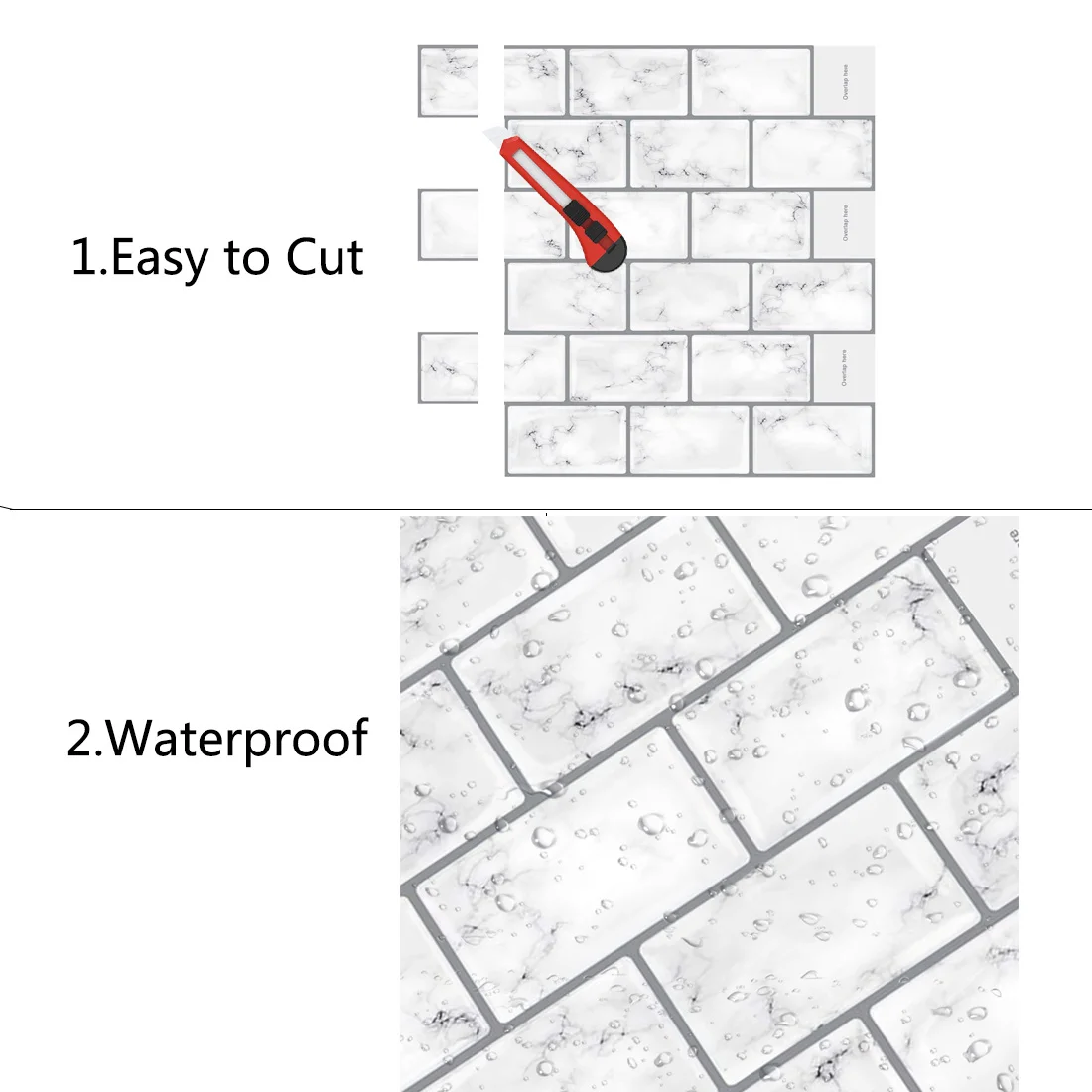 Пилинг и палочка могут быть обработаны на всех гладких, чистых и сухих поверхностях, таких как окрашенная гипсокартон или даже прямо над керамической плиткой. Просто очистить и приклеить, легко установить его. Все, что вам нужно, это линейка, карандаш, ткань и ножницы. Этот проект позволит вам сэкономить время и деньги по сравнению с реальной плиткой. И не стоит беспокоиться, что плитка не подходит к размеру Вашей стены, так как ее легко резать.