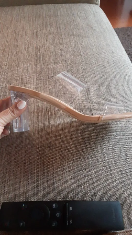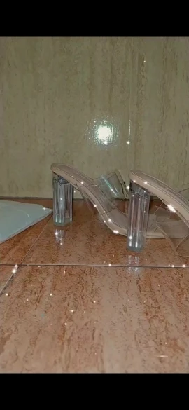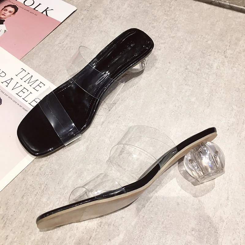 Женские прозрачные шлепанцы, на высоком каблуке, из ПВХ