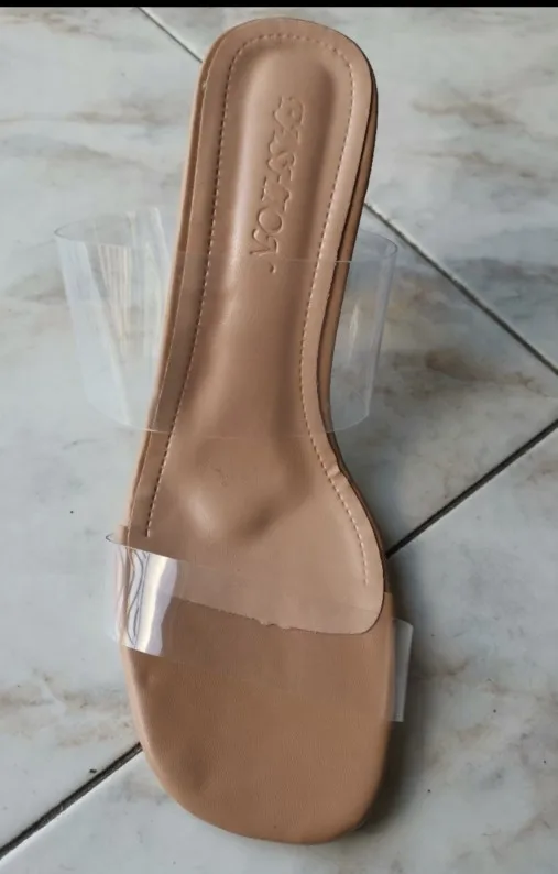 Шлепанцы женские кожаные, прозрачные, на высоком каблуке, с квадрат...