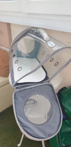 Очень хорошо Большой размер подходит для кошки .. И Попугаи. Прозрачная упаковка внутри и снаружи должна быть удалена до тех пор, пока зрение не станет четким Я сдавливал сбоку. Мне нужно положить наполнитель внутрь, пока кривизна не будет слегка изменена. В нижней части есть защитный предмет, который можно стирать