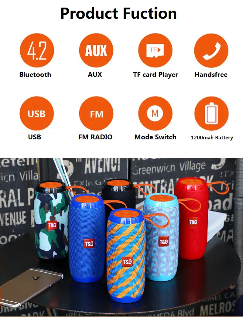 1. Новый товар и высокое качество. 2. Сетчатая крышка для защиты динамика от воды, пыли, ударов. 3. IPX5 водонепроницаемый, пыленепроницаемый, ударопрочный. 4. 5 Вт * 2 большая мощность с двумя басовыми диафрагмами на каждой стороне, вибрирует при воспроизведении музыки. 5. Цилиндрическая форма и встроенный левый и правый канал обеспечивают 360 ° стерео. 6. Функция вызова, микрофон с шумоподавлением позволяет отвечать на звонки, не доходя до телефона. 7. Fm-приемник позволяет свободно слушать радио. 8. Поддержка MP3, WMA, WAV, FLAC, APE форматов музыкальных файлов. 9. Поддержка tf-карты или sd-карты misro до 32G, поддержка USB 2,0 диска. 10. Поддержка USB флеш-диска plug and play. 11. Поддержка внешних MP3 / MP4/компьютера и других функций аудиовхода (AUX) 12. Функция TWS, вы можете подключить два динамика с одной синхронизацией телефона. 13. Простое управление кнопками, вы можете нажать кнопки для включения/выключения, воспроизведения/паузы, режима переключения, пропускать песни, регулировать громкость и т. Д. 14. Bluetooth 5,0, быстрое подключение и стабильный сигнал, Совместимость со всеми устройствами Bluetooth. 15. Аккумулятор емкостью 1200 мАч до 10 часов воспроизведения при 2/3 громкости при полной зарядке. 16. Это не только bluetooth-динамик, но и радио, проводной динамик, басовый бум-бокс