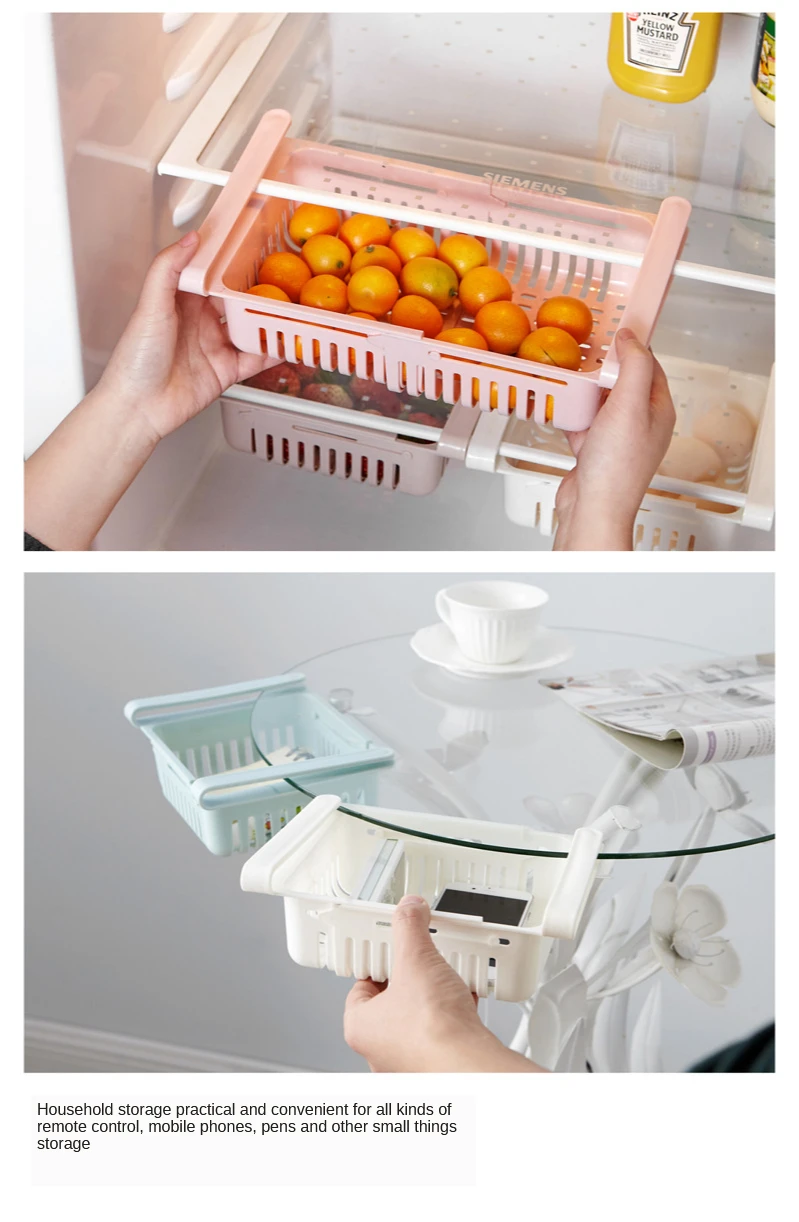 1 шт., органайзер для еды на холодильник, регулируемая стойка для хранения, органайзер для хранения ящиков, контейнер для хранения, полка для хранения на холодильник, кухонная подставка