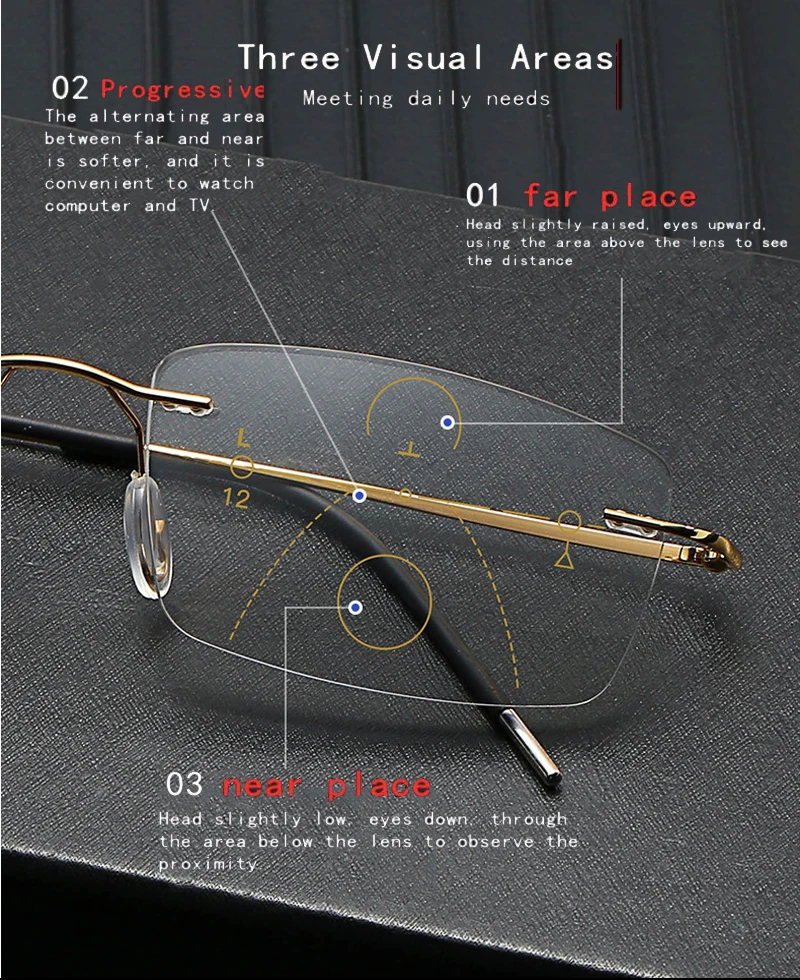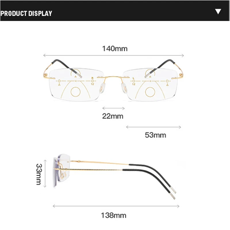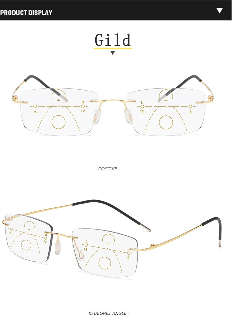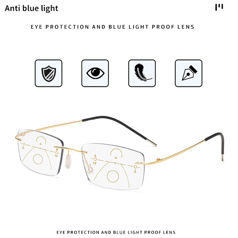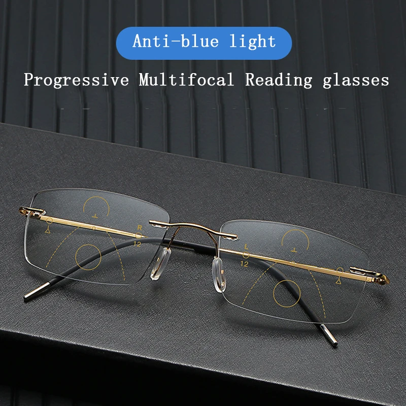 Очки для чтения без оправы с умным зумом, титановые прогрессивные о...