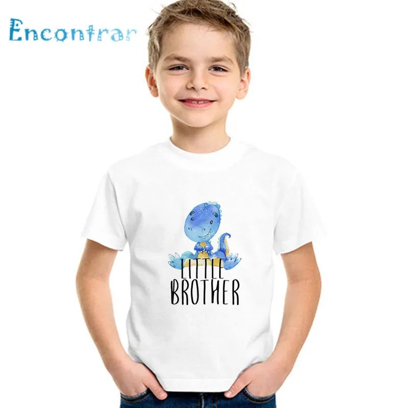 Футболка для мальчиков с мультипликационным принтом большого и маленького брата, динозавра, детская забавная одежда, Детская летняя футболка с коротким рукавом, oHKP5395