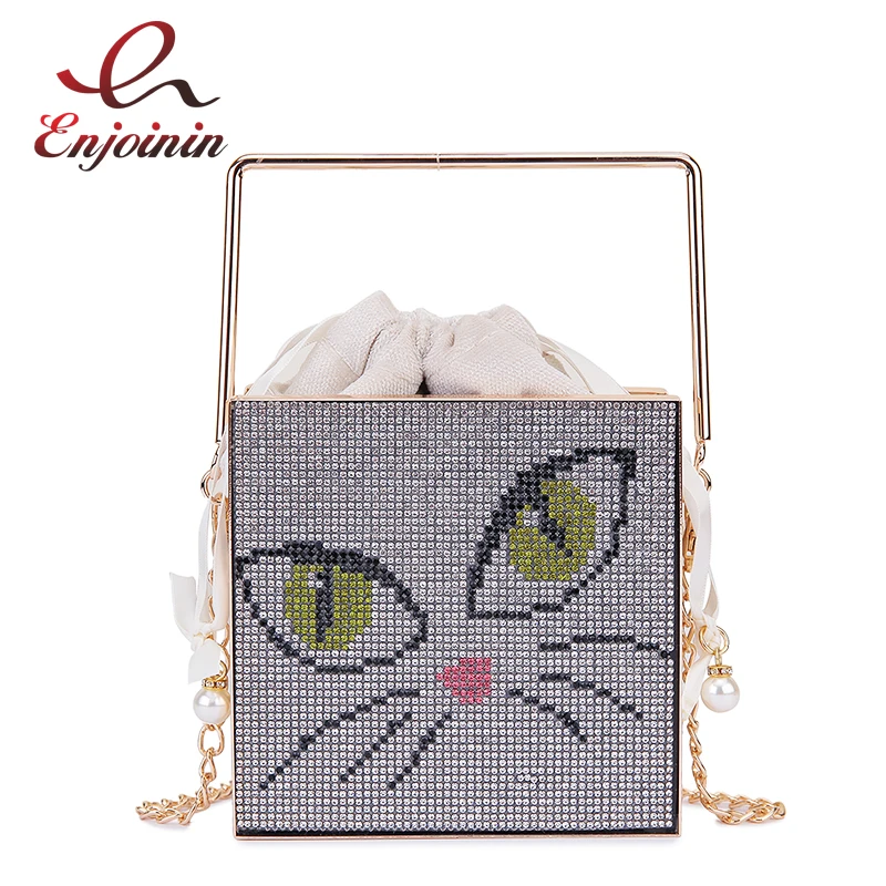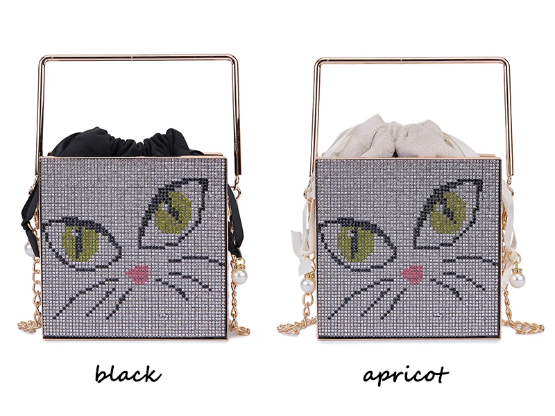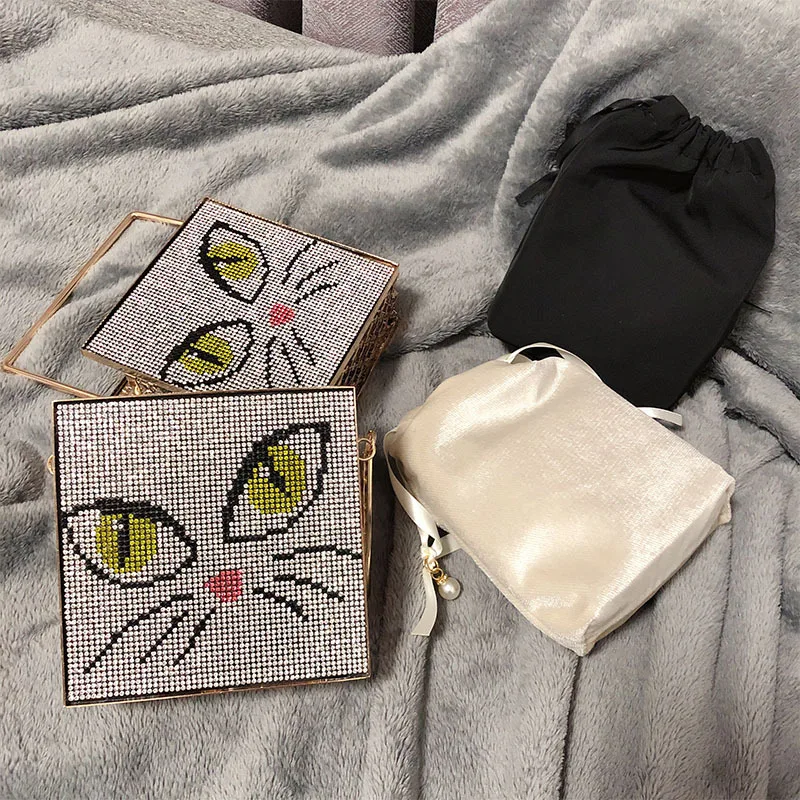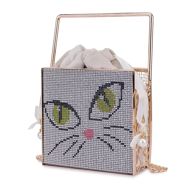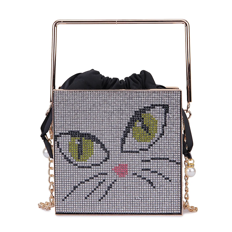 Роскошная вечерняя сумка с рисунком кота и бриллиантами для женщин 2020 новая маленькая сумка через плечо квадратные сумочки с металлической ручкой и Сумки Дизайнерская Сумка