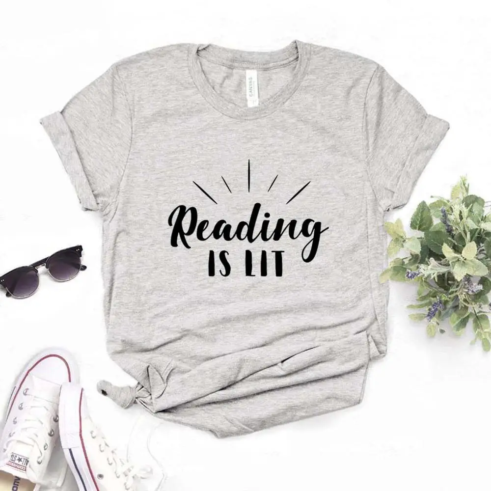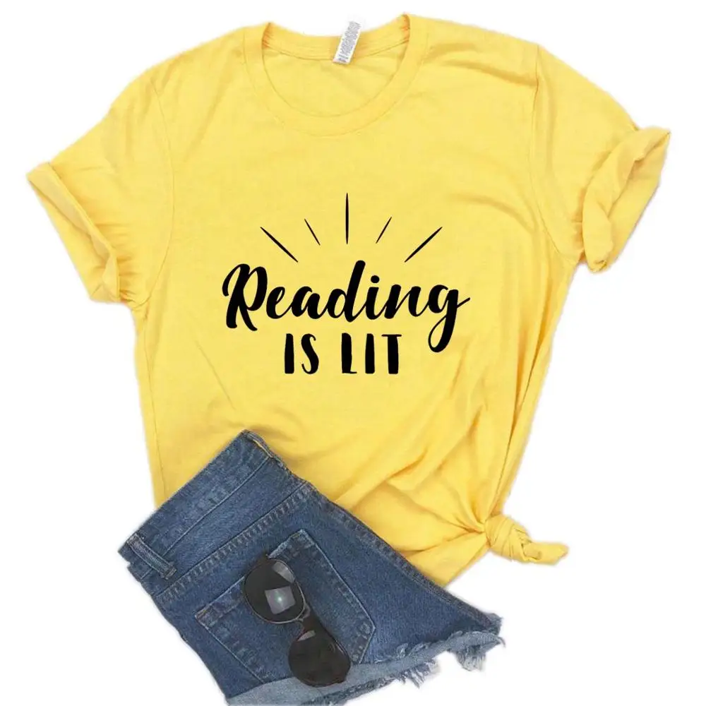 Женские футболки с принтом для чтения Is Lit, хлопковая Повседневная забавная Футболка для леди, Женский Топ для молодых девушек, хипстерская женская футболка