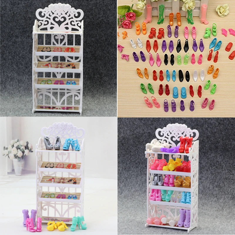 Стеллаж для белой кукольной обуви10 пар обуви в случайном порядке аксессуары для куклы-Барби детская игрушка