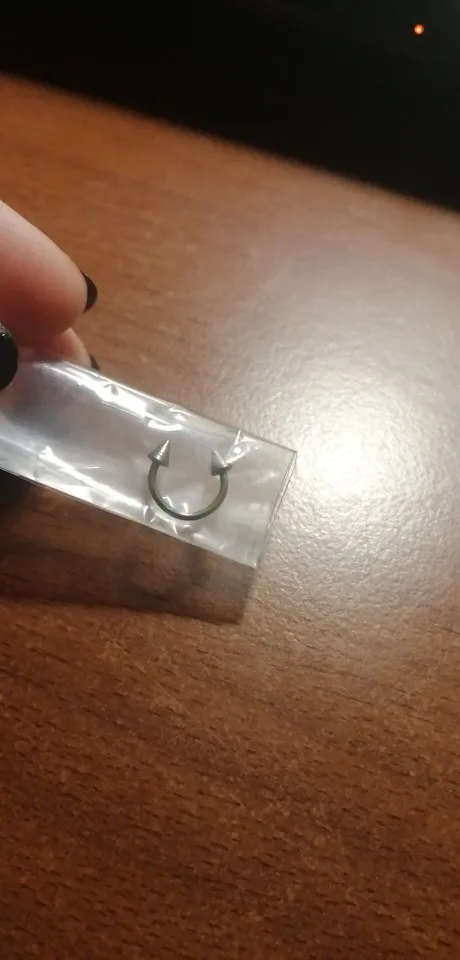 Прибыло в Москву за месяц. С размером не рассчитала - думала, будет пошире. Но неплохо. Качество на вид хорошее за такие деньги, шипы откручиваются, но сложно, потому что маленькие. Не критично. Уверена, что это титан, потому что лёгкий, но характерного звука металла не слышала, когда старалась проверить :) Позже, когда прокол заживёт не с этим украшением, вышлю фото уже с ним и ощущения.