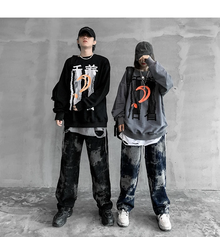 Брюки Hybskr женские в Корейском стиле, повседневные штаны оверсайз с графическим принтом, уличная одежда для пар, осень 2020
