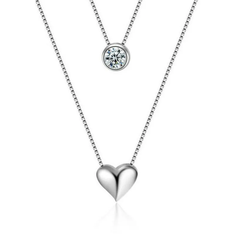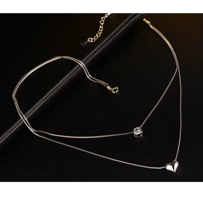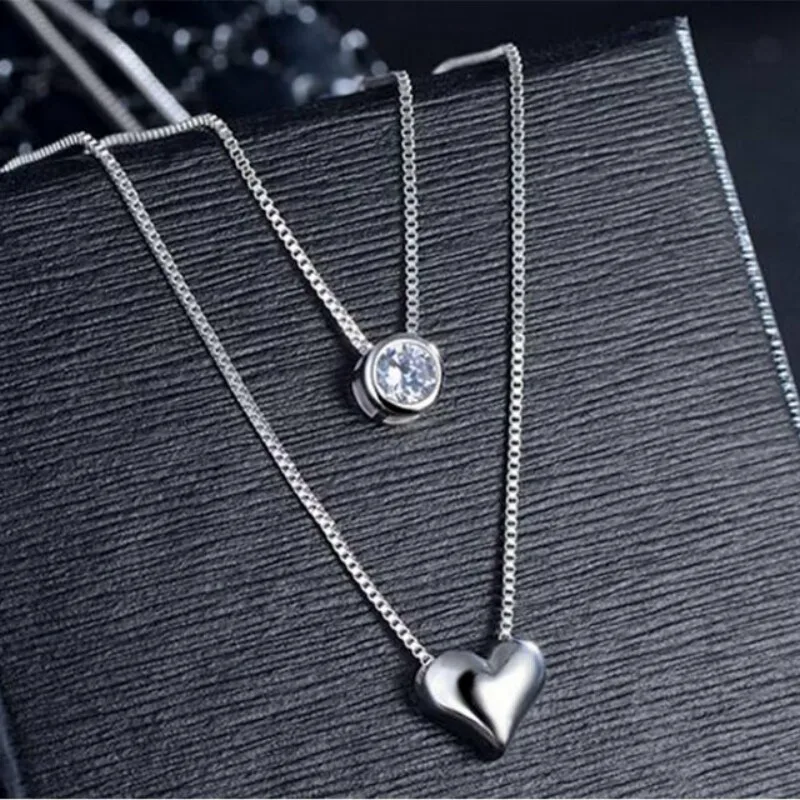 Женское Двухслойное ожерелье из стерлингового серебра 925 пробы с подвеской в виде сердца из циркония
