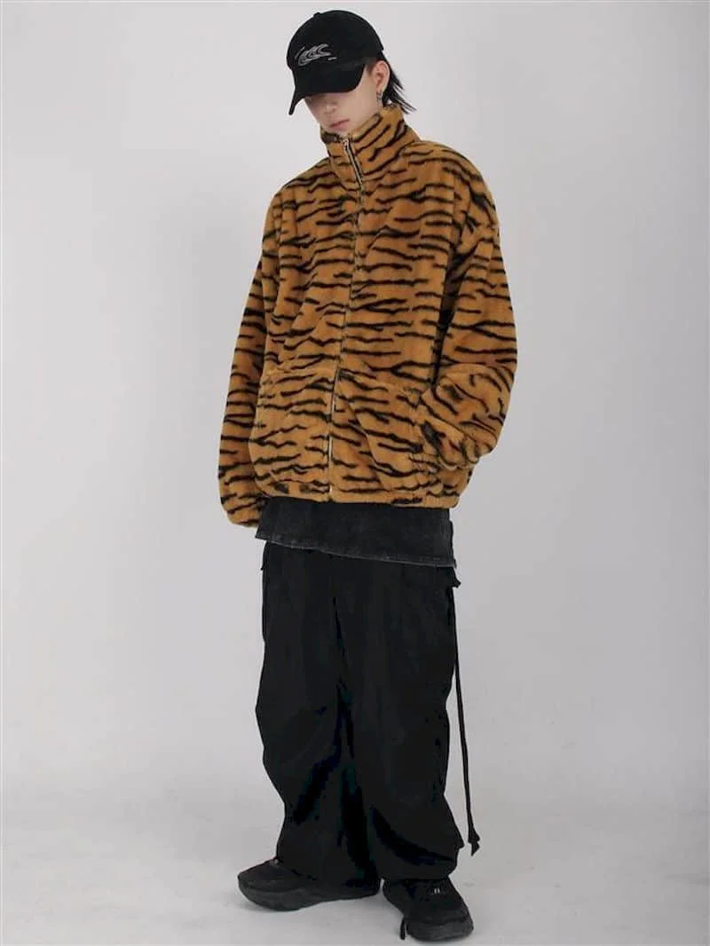 Осенне-зимняя уличная бархатная Толстая Уличная куртка в стиле ретро с принтом зебры, плюшевая Толстая куртка на молнии с воротником-стойкой