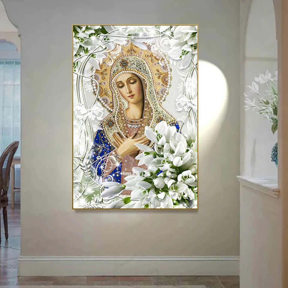 Diy 5D алмазная живопись особой формы, Набор для вышивки крестиком с изображением девственной лилии, Алмазная мозаика, картина для религиозной женской живописи