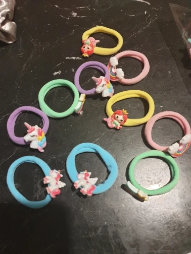 Bardzo ladne gumki. Fajnie trzymaja sie na wlosach. Wlosy nie wplatuja sie. Dziecko zachwycone. Super kolory i Szybka wysylka. Dobra komunikacja ze sprzedającym .