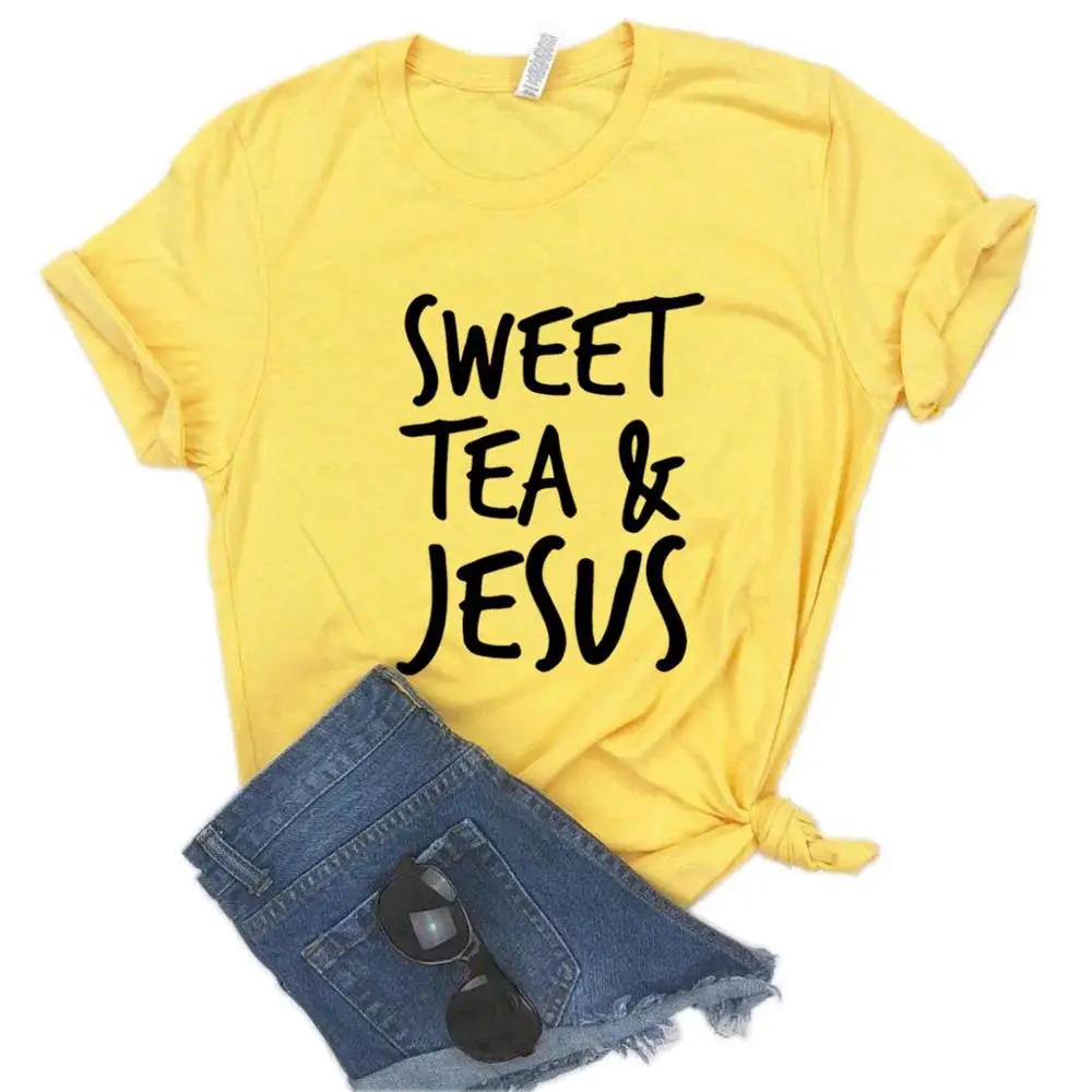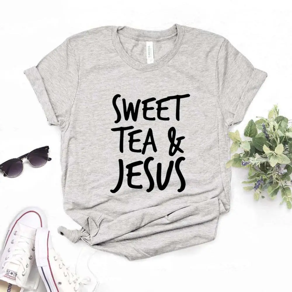 Милые женские футболки с принтом чай и Иисус, хлопковая Повседневная забавная футболка для леди, Yong, топ для девочек, хипстерский FS-134